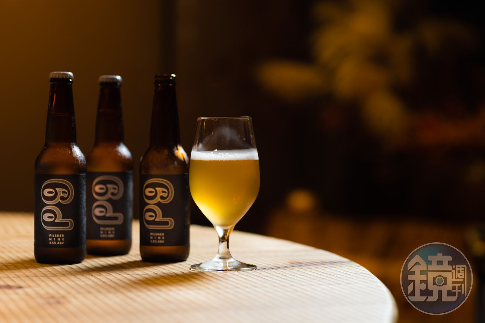 雖說皮爾森的口味大眾,但江振誠要的皮爾森從裡到外可不平凡。「Chef (江振誠)在外觀上也給了很多想法,連直接在酒瓶上絹印的發想都出來了,最後選擇用霧色的四層處理酒標來達成質感上的任務。」宋培弘說。由鄒駿昇所設計的黑色酒標,僅印「P9」簡單二字,指的是「Pilsner's night(nine)」,諧音也是中文的「啤酒」。關於口味更是一大挑戰。