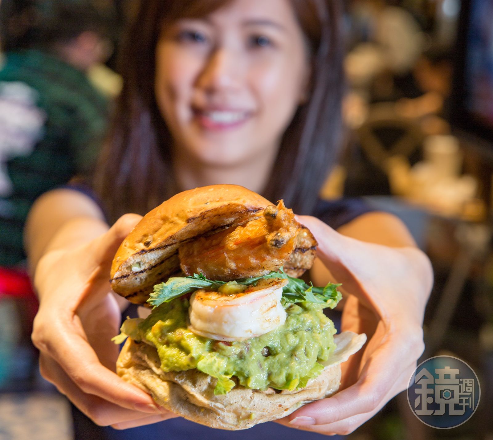客人點好漢堡的主菜,可以自選配料DIY,被形容成C╱P值超高,一度引發極大話題。今年10月新開在信義區的A11店,推出當店限定的「牛P堡」,簡直就是一份海陸大餐,牛肉排上放了乾煎明蝦、酪梨醬,還有酥脆天婦羅蝦頭,結合美墨料理,口感豐富清爽,還吃得到食材原味。