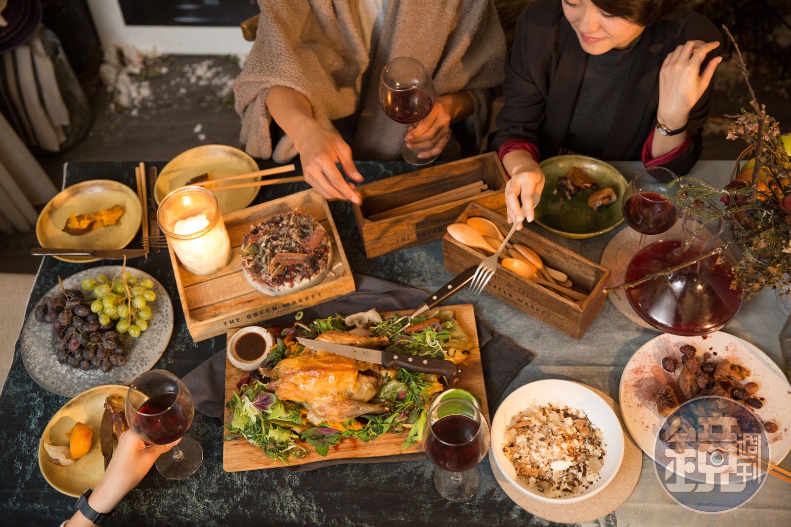 熱紅酒之外,餐桌上另一不可缺的要角就是烤雞了。你當然可以去好市多或香雞城買現成的,但如果費工一些,自己製作耶誕烤雞搭配當令蔬果,絕對更有氣氛。