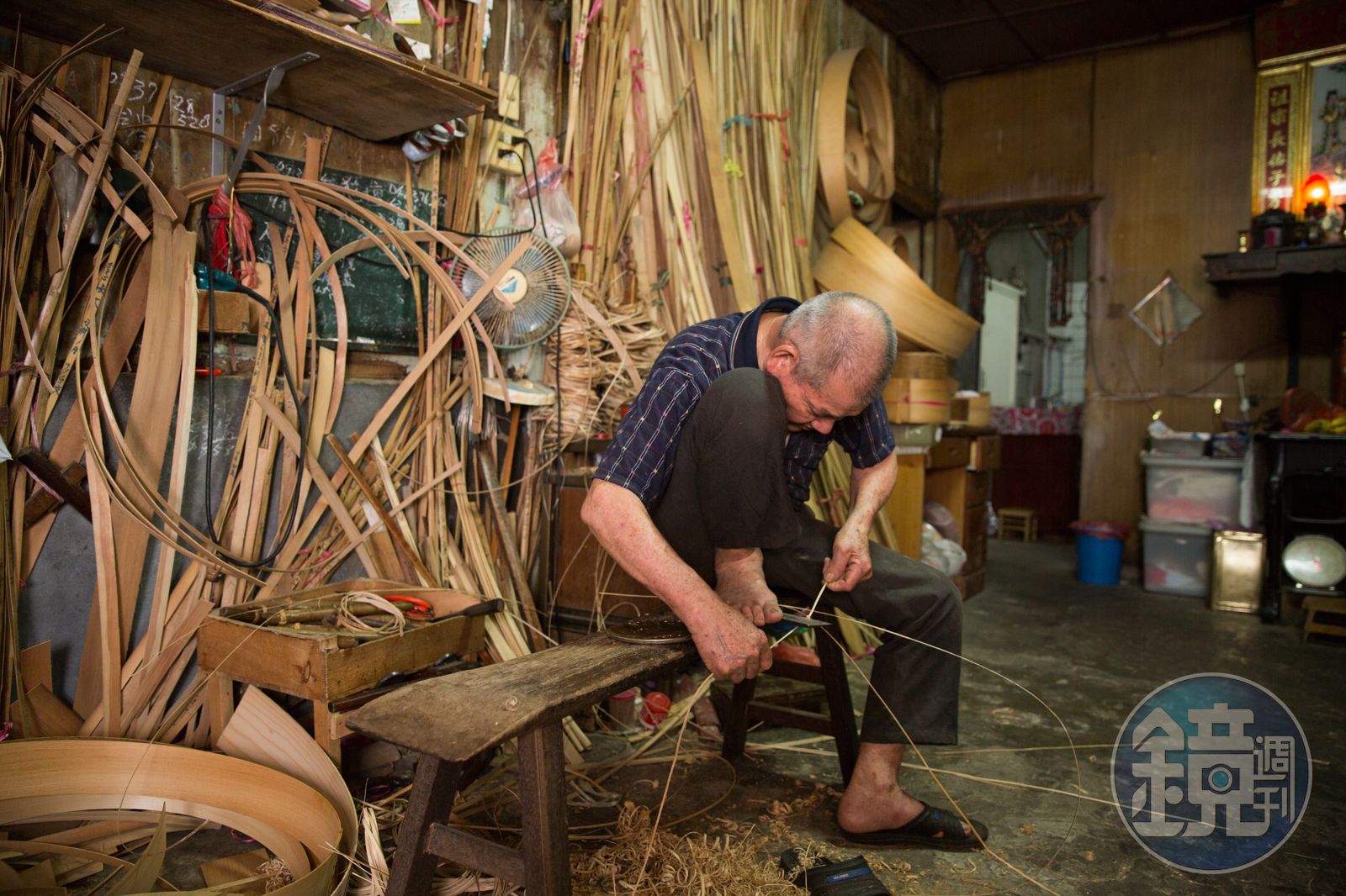 怯生生進門,我靜靜蹲下來,從板凳高度的視線,看著老人家的工法,「全台灣只有4個人會做這款蒸籠。」他似乎看出我的好奇,這不就是傳統木蒸籠嗎?我暗自心想,「好的蒸籠要用松梧(檜木),用手工做。」他熟練用竹條編串出圓圓的木框,木料、竹條不能用機器刨削,一切全憑手工。