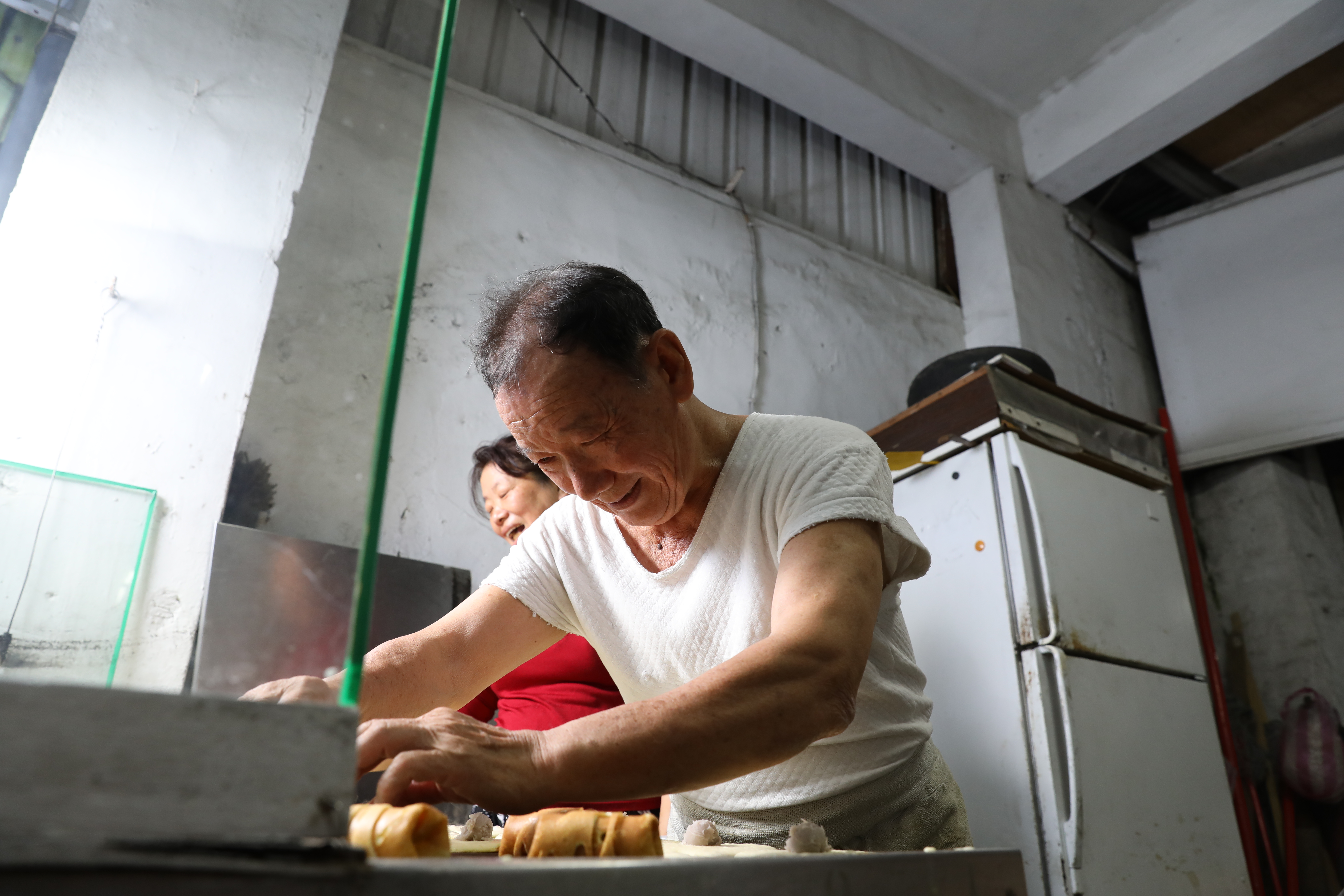 「爸爸年紀大了,他要做我們就陪著他做,」辭掉工作回來幫忙的兒子說。雖然他感嘆經濟不景氣,飯一定要吃,甜點卻不必每餐必備,一旁的阿伯,嘴上還是笑笑的,整個晚上都保持著可愛的微笑。