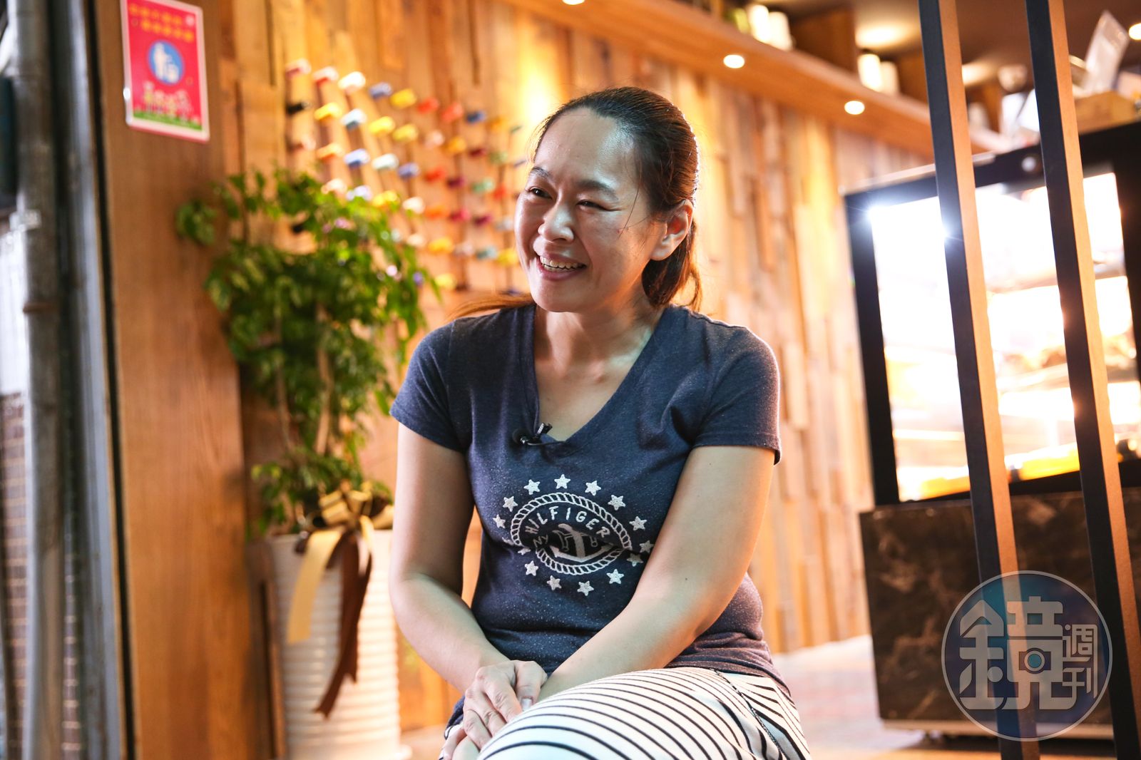 磨米機運轉聲轟隆隆,老闆娘唐翊甄搬起10幾公斤的米漿袋,準備重壓瀝乾水分,送進蒸籠炊煮成麻糬,她告訴我:「這個重量太瘦的人拿不動,太胖也很難拿,會很喘!」看她現在身材勻稱,很難想像她曾胖到90公斤。