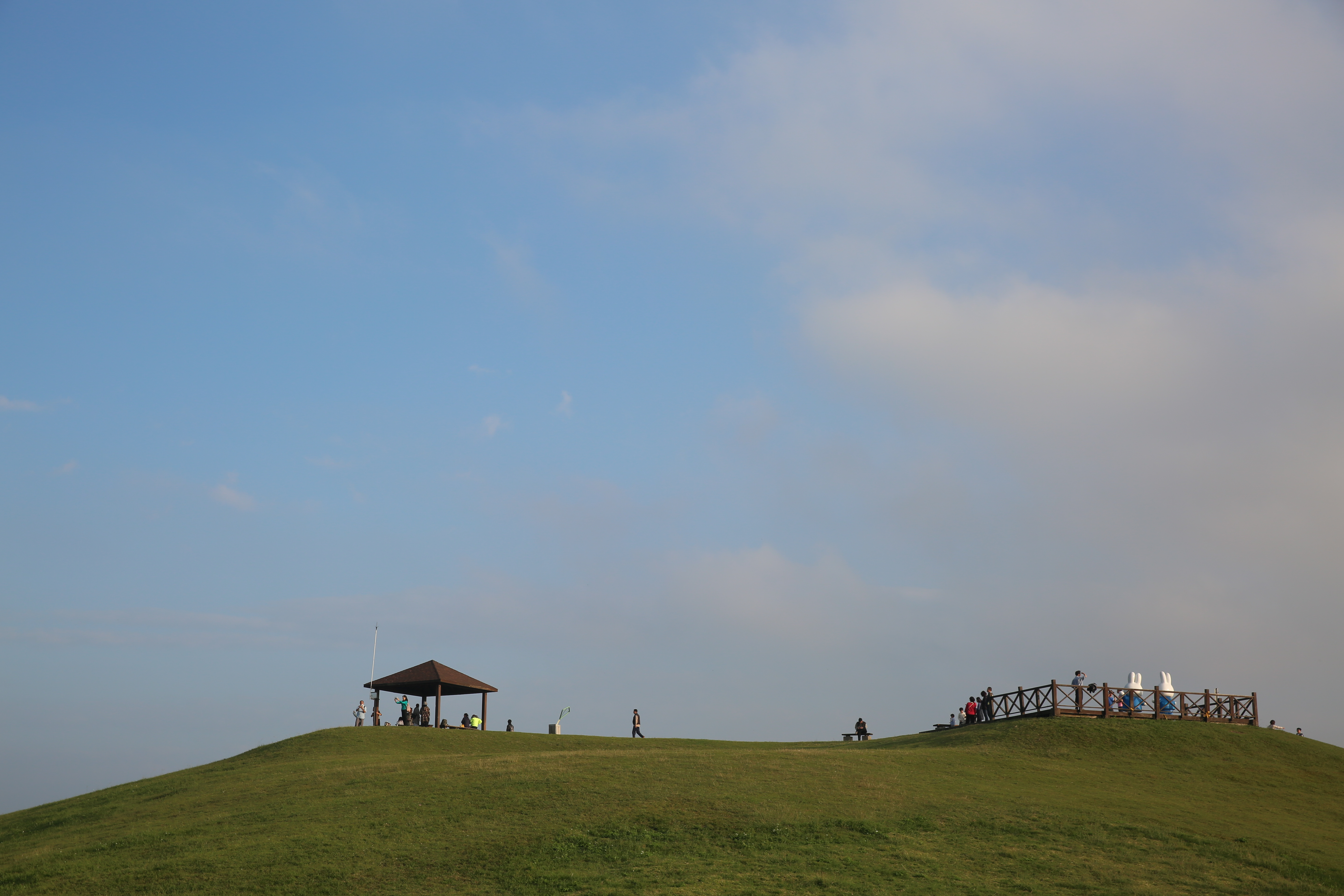 轉身再換個場景,去年荷蘭插畫家狄克•布魯納(Dick Bruna)在台展出的米飛兔(Miffy)家族,今年夏天也在這兒落腳,11座米飛兔互動藝術從迷宮、巨型椅、到直升機,視覺充滿童趣,沒想到,這一片草原風景如此多變,有如千面女郎。