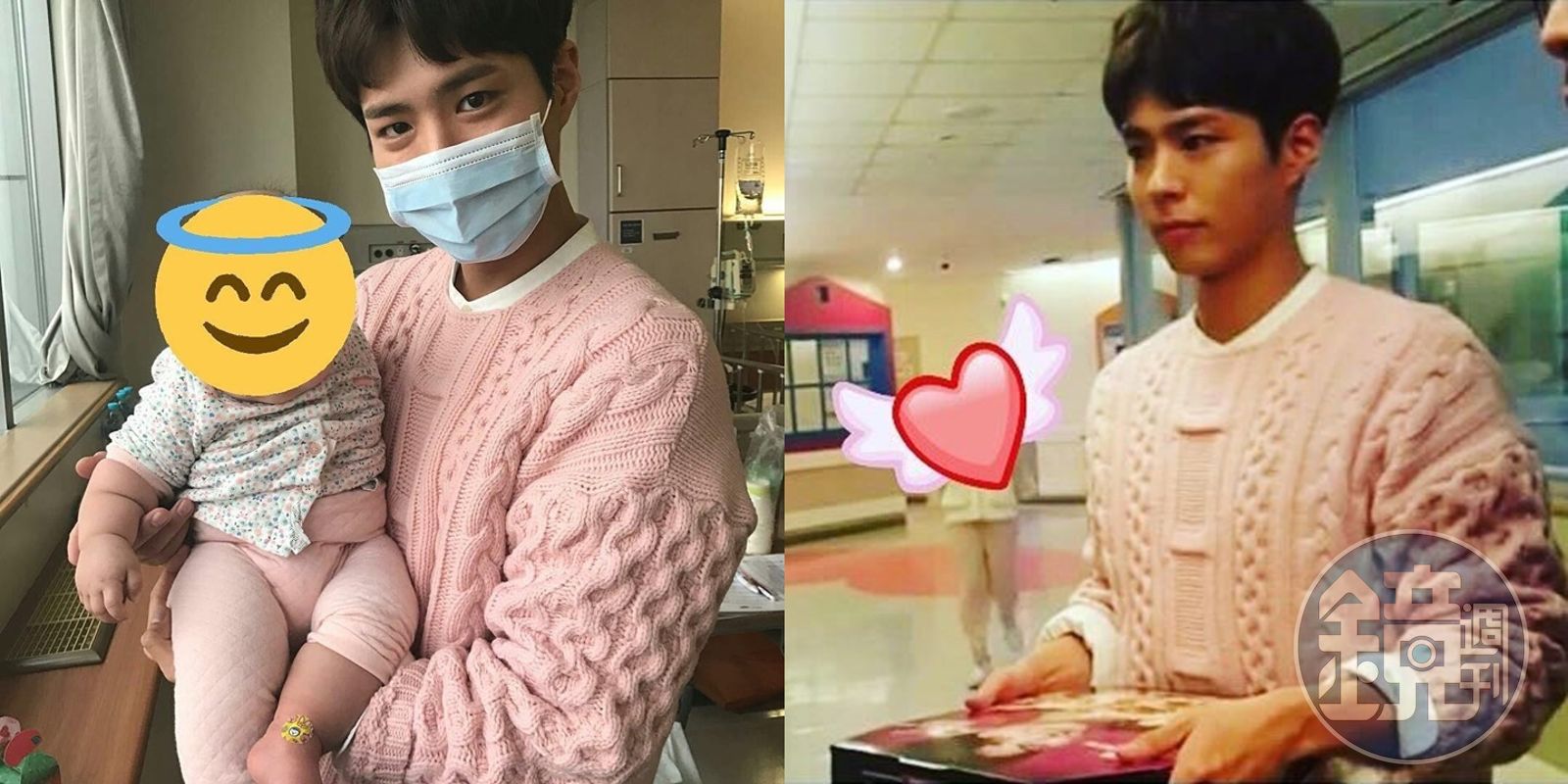 朴寶劍穿著粉紅色毛衣,親切地與醫院裡的病童聊天,除了給予擁抱與鼓勵,還一一合照,逗他們開心,不只病童得到溫暖,在場陪伴的家屬與醫護人員也被他感動,朴寶劍帶了熱騰騰的披薩送給大家,沒有架子的舉動再一次贏得好評。