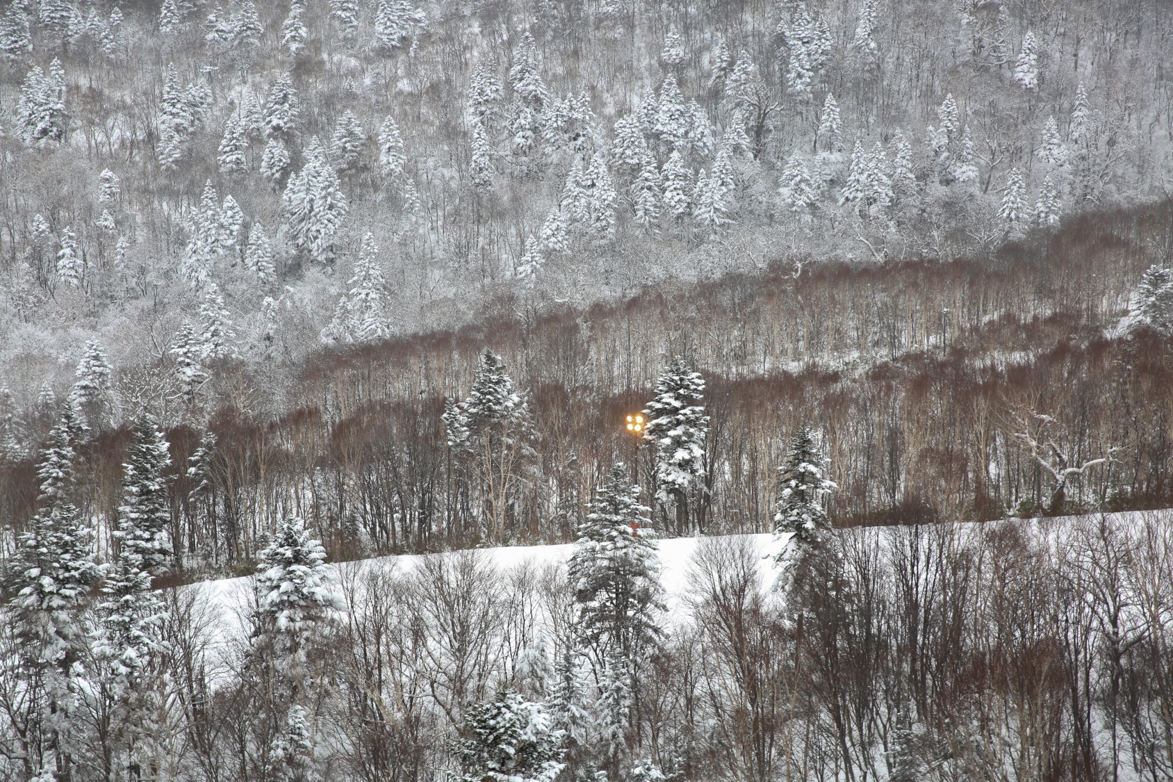 神奇的是,在我們要去滑雪場拍攝的前一晚,黑漆漆的天空開始飄雪,剛從櫪木縣拍完雪景的攝影師本來還說:「這雪花太小,最好下大一點拍起來才有感覺。」