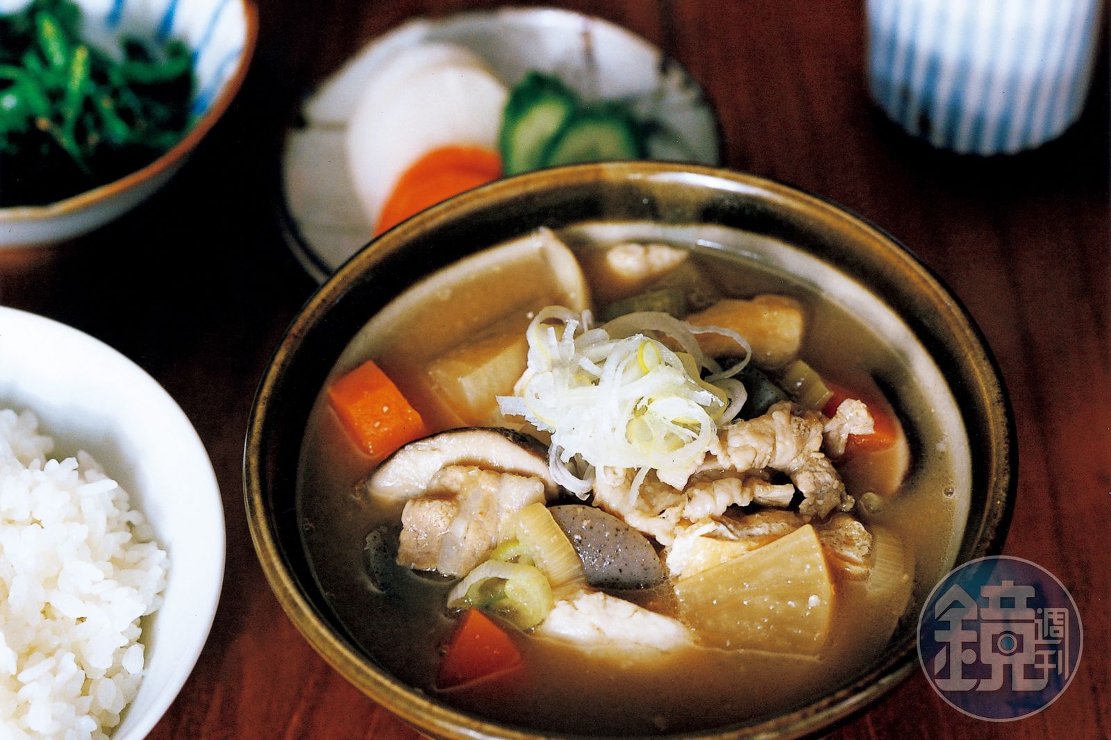 深夜食堂的豬肉味噌湯,正如其名是招牌菜。因為是搭配白飯的「定食」,裡頭放了許多蔬菜當作配菜,簡直就像一鍋燉菜,分量十足。是一道味噌風味醇厚、溫暖身心的菜餚。(料理出自第11集)