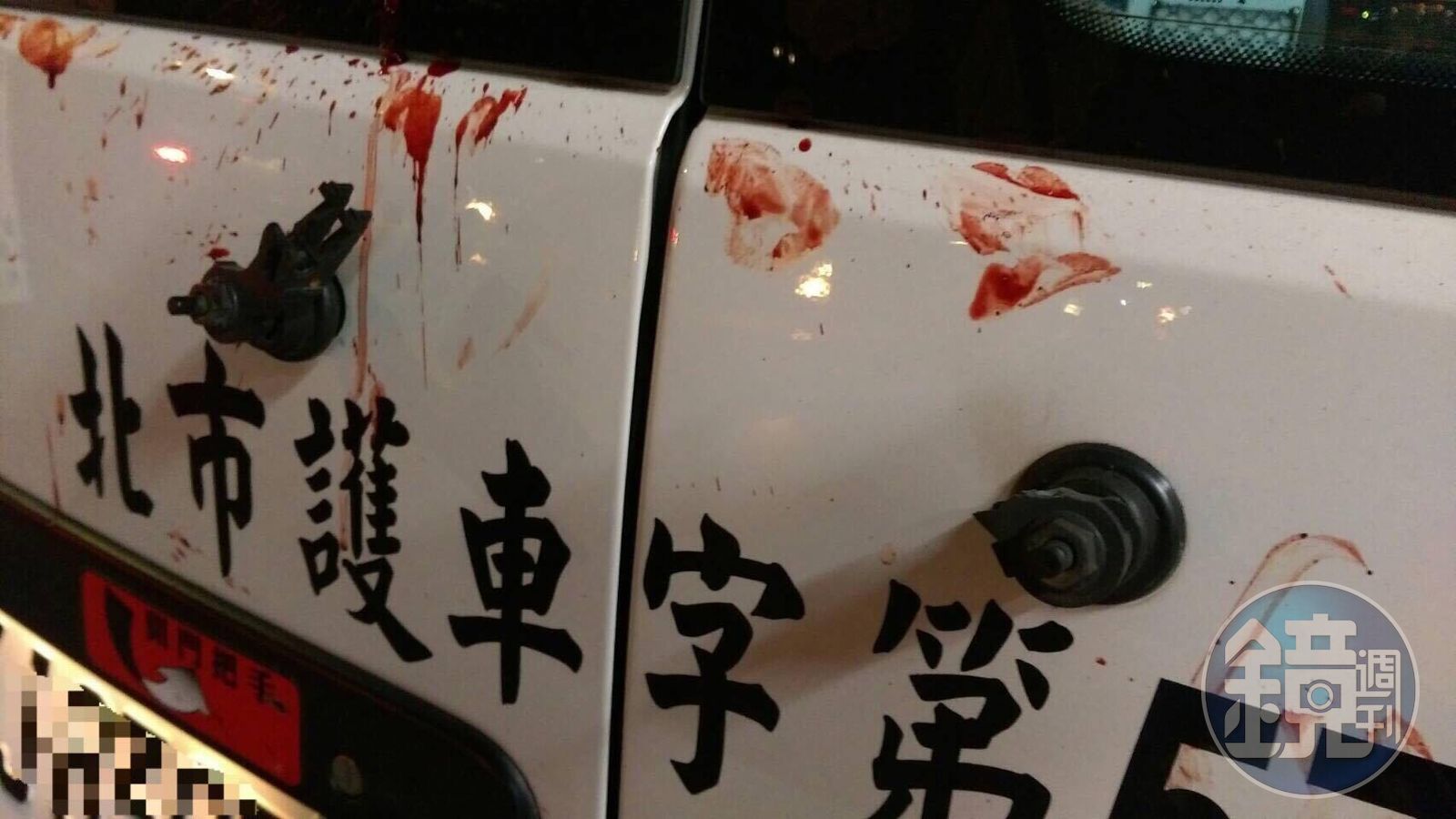 後港分隊消防隊員表示,3日晚間7點半接到報案後,就趕到現場,沒想到酒醉的男子一看到救護人員就發狂似地大鬧。男子見到救護車後,就衝上前去,試圖將雨刷折斷,甚至用自己身上冒出的鮮血塗抹在救護車的車身上,讓原本潔白的救護車瞬間染紅,一條條的血痕佈滿車身,畫面十分懾人。