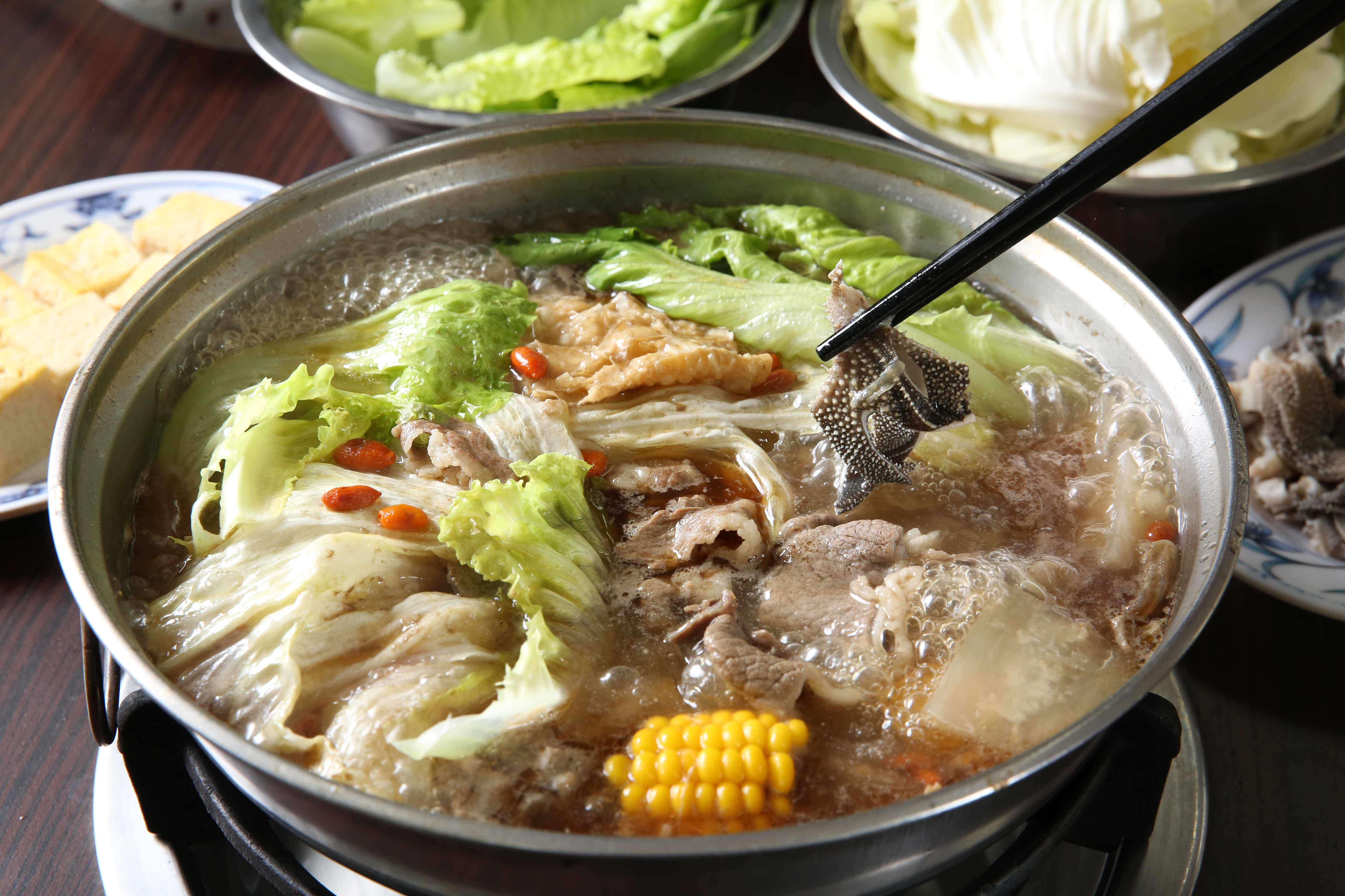 推門走進店裡,一股濃郁中藥味撲鼻而來,羊大骨熬6小時的底湯再加入中藥材、麻油等,湯頭溫醇滋補,羊肉也沒有討厭的羶味,關鍵就在於羊隻的挑選。阿枝說:「羊肉是從市場喊活羊回來請人家宰殺,只挑1年2個月大的公羊,肉質好吃、沒有羶味。」