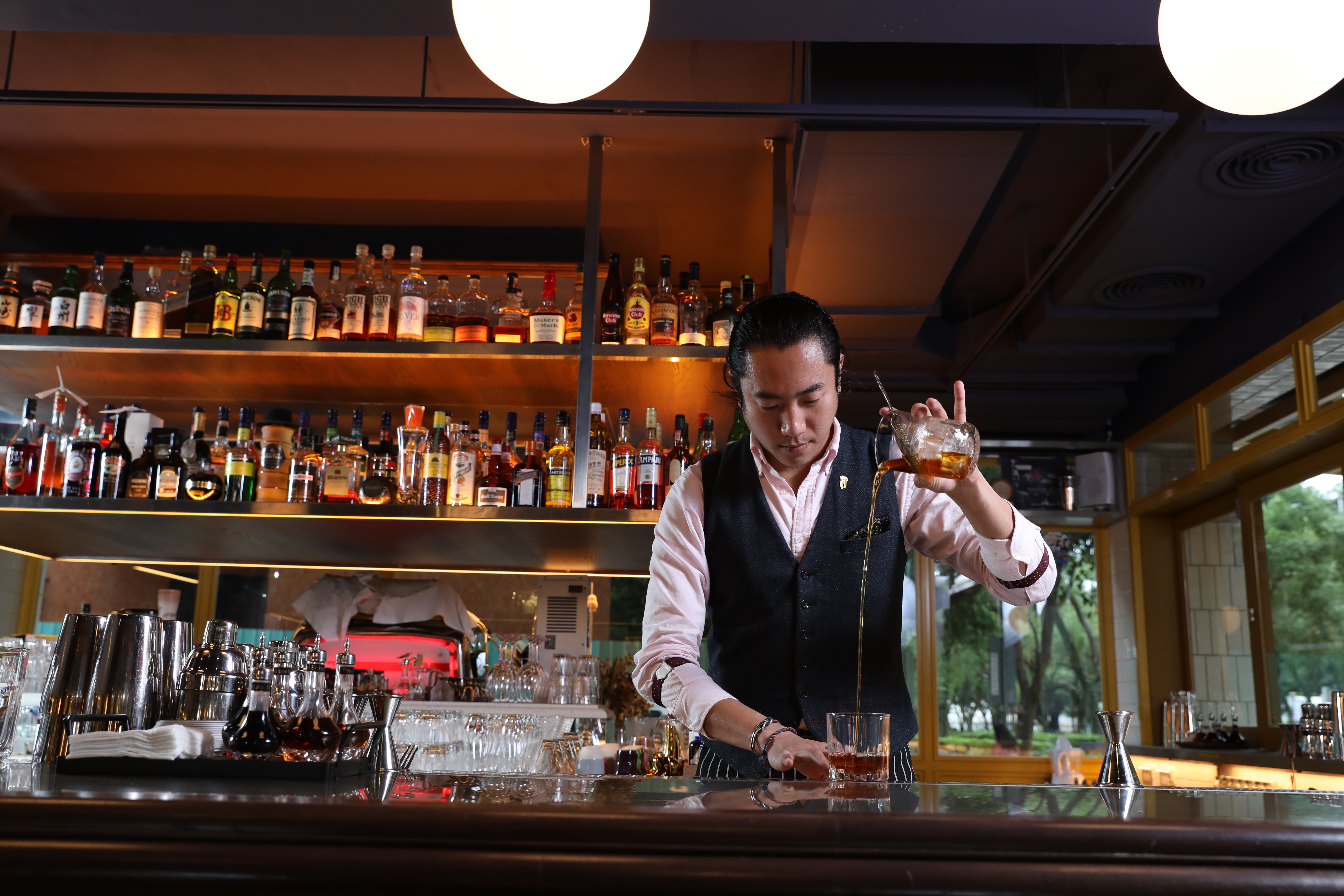 「如何從黑裡看到白,如何從白裡看到不一樣的黑。」他舉偶像攝影大師李屏賓的話來詮釋調酒哲學,「我覺得調酒不只是食材與酒精的堆疊,身為調酒師,就是在日復一日的工作中,找出不同的變化。」李屏賓以光影寫詩,他的工具則是酒。