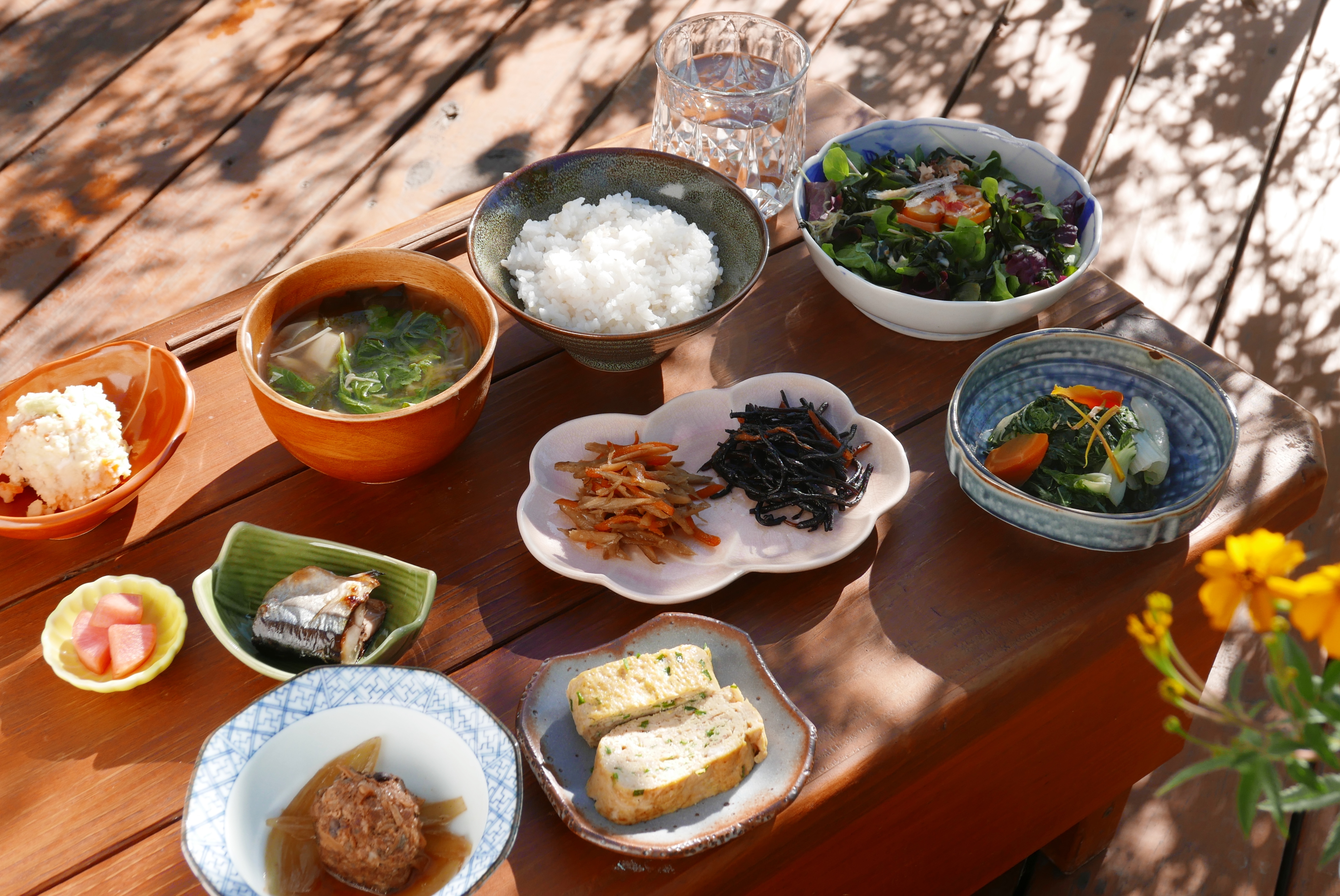 大清早,飄飄與日籍夫婿用心打點滿桌菜色,這頓早餐真的是慢慢吃,醃漬的日本醬菜、自家種植的蔬菜做成沙拉,還有媽媽特製的福菜獅子頭,全部手工製作,像極了到日本人家作客。