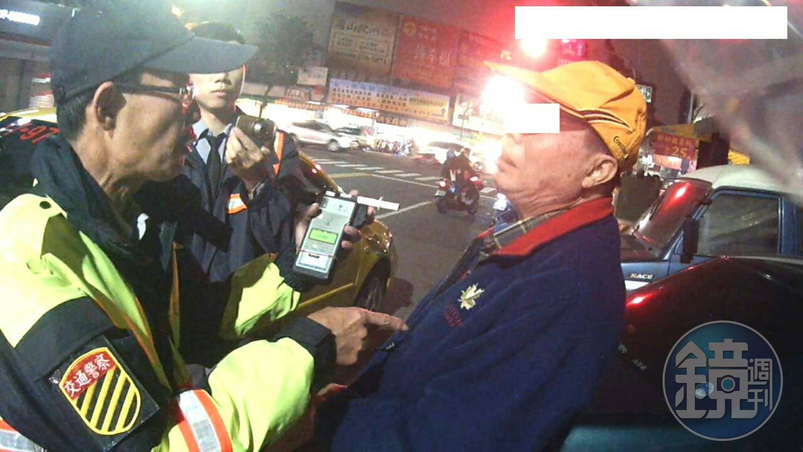 高雄警方日前巡邏大順莊敬路口時,發現一輛計程車忽開忽停,左搖右擺蛇行,加上大燈又沒開,員警認為小黃司機有異,將他攔停盤查,發現66歲的吳姓駕駛未繫安全帶,還渾身酒氣。