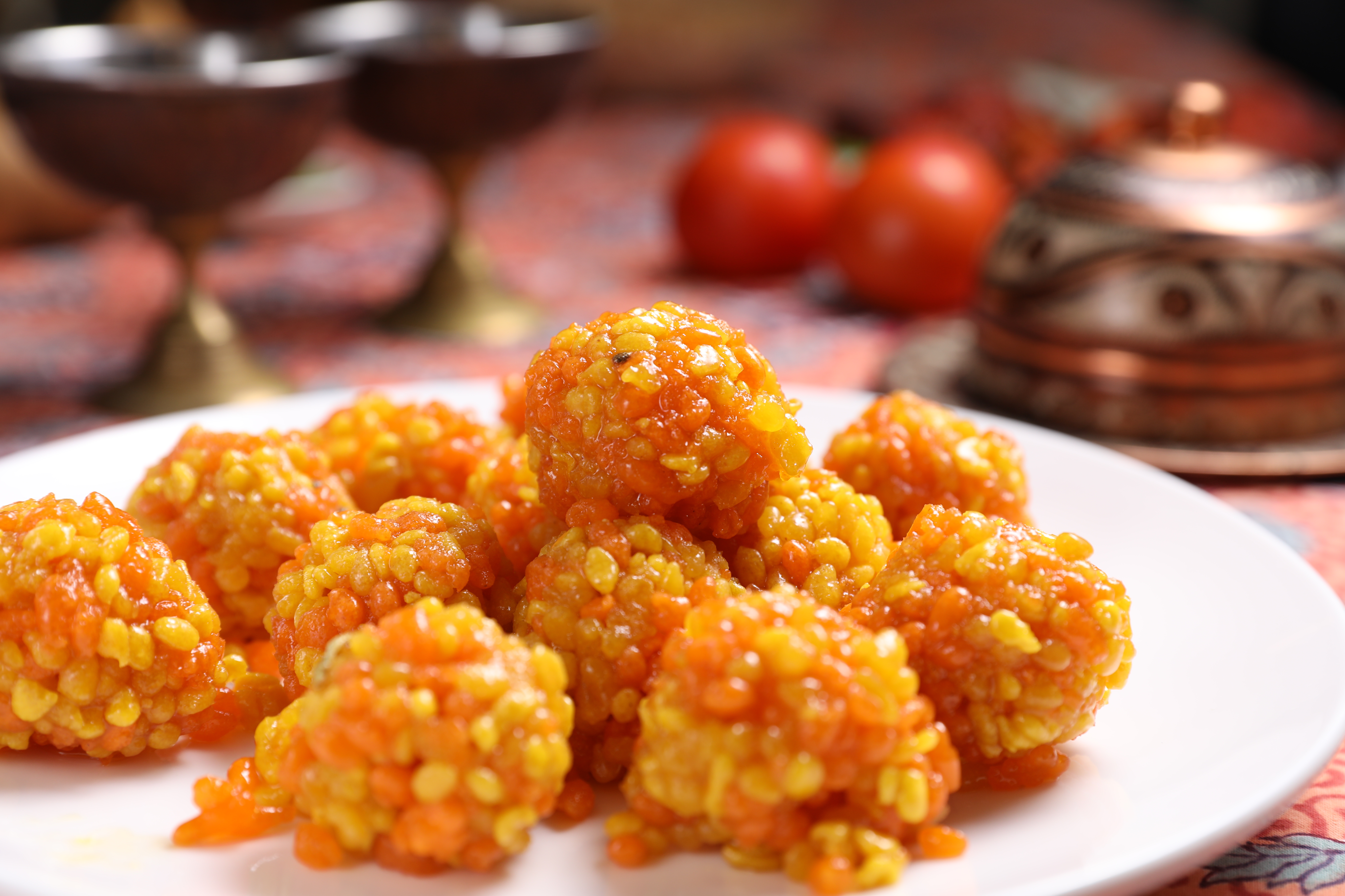 另一款甜點「拉杜」,則是將鷹嘴豆粉調成麵糊,下油鍋炸成顆粒狀,再與糖漿一起滾煮,最後手捏成球狀,「這不只在過年吃,結婚、派對,朋友訂婚時都會吃。」Ameen笑說。