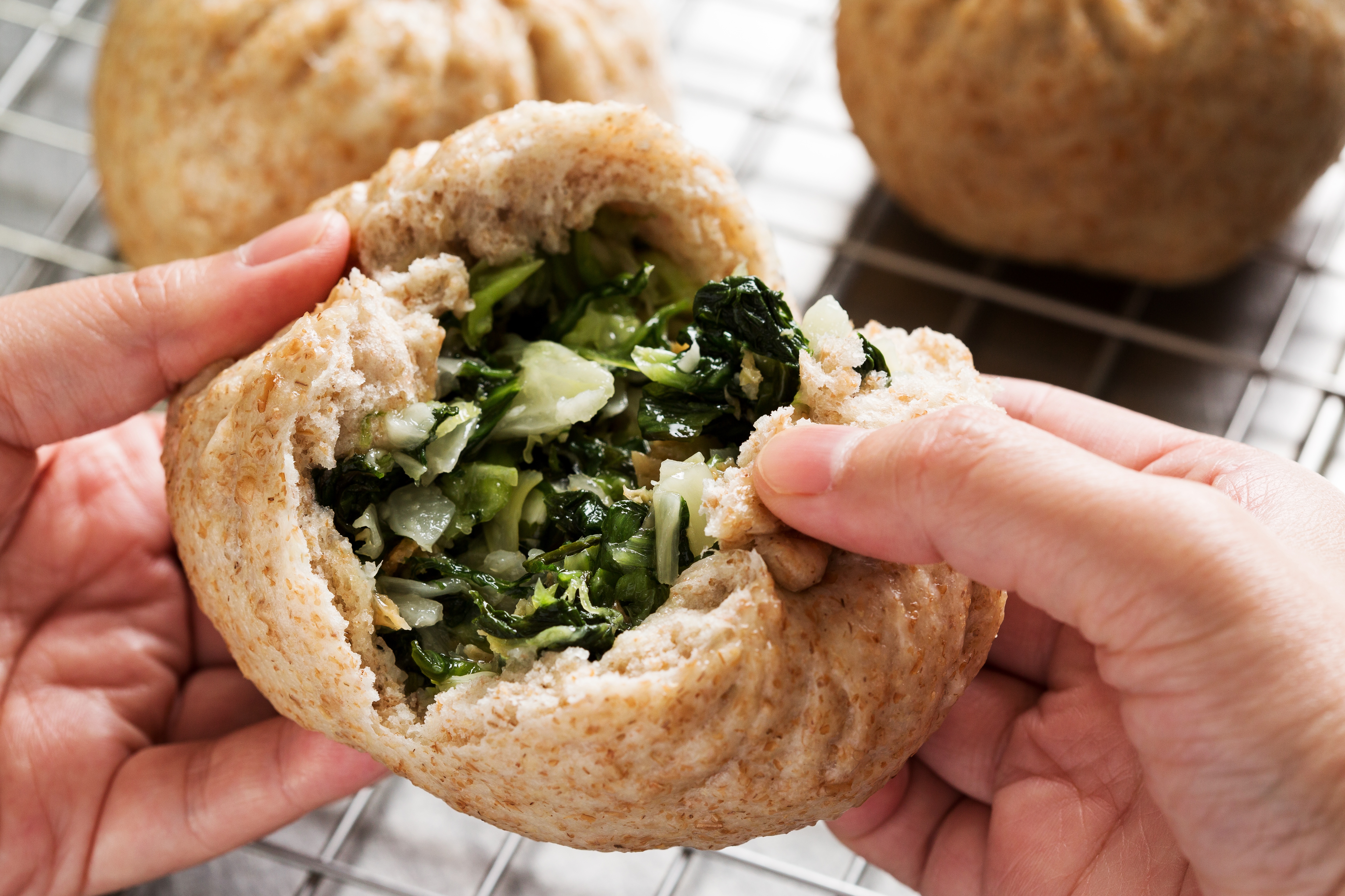 熱騰騰包子出爐,立刻吸引顧客上門,儘管只賣蔬食口味,詢問度依然高,「我們鮮蔬包是包入5種蔬菜,分別清洗5到7次喔。」親和力十足的老闆娘葉謹瑜,不厭其煩地解說。 不賣大眾較喜愛的肉包,主打鮮蔬口味,對於轉行的葉謹瑜來說,是很大膽的嘗試,「我就是初生之犢不畏虎啊!」6年前她原本在醫療健檢業,擔任董事長特助,發現父親罹患膀胱癌後,重新思考人生方向。 她明白健康的根源來自飲食,照顧父親時,她辭去工作決定轉行,「只要飲食控管好,就不容易生病,所以我想朝這個方向走,做健康的東西,現在人吃到蔬菜的機會太少了。」