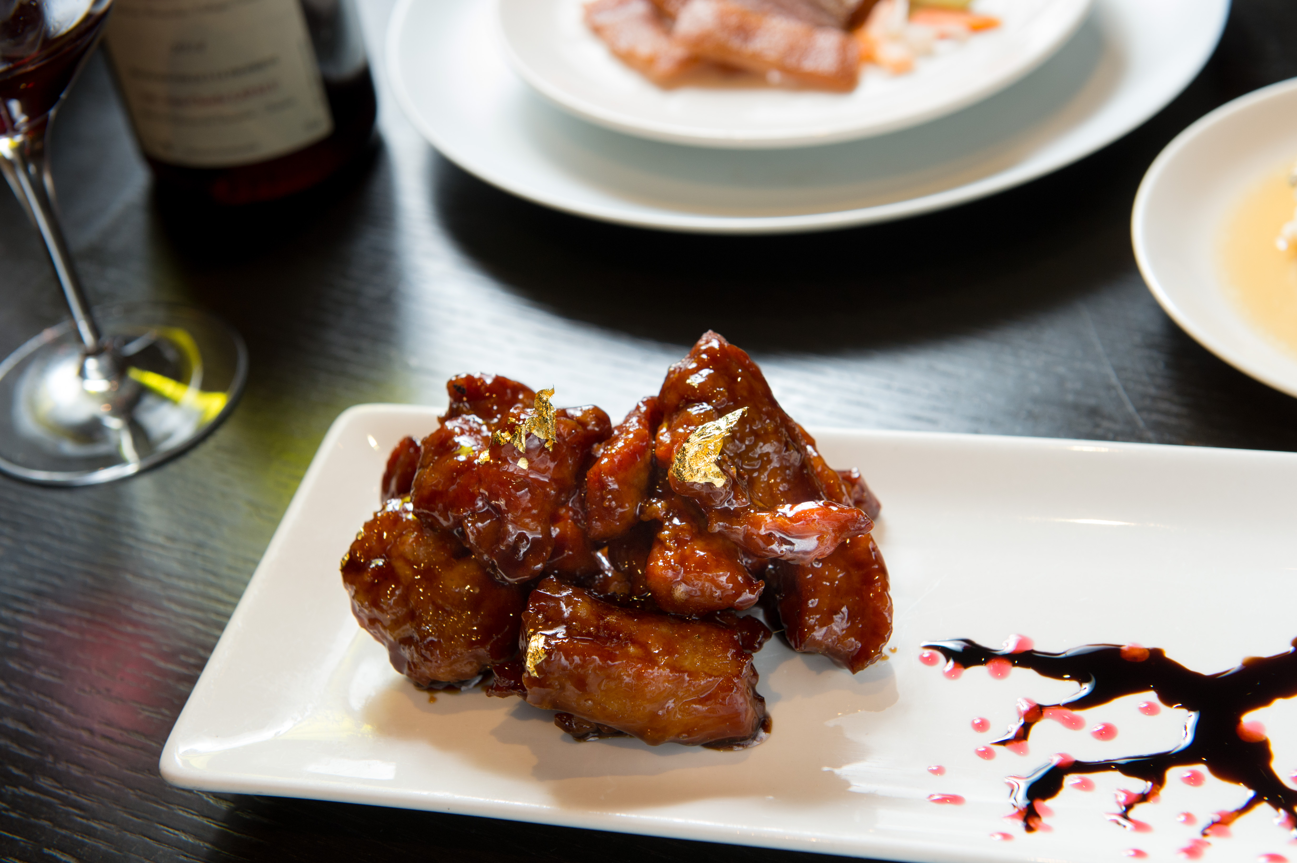 生津糖醋肉 香料味紅酒VS蜜桃甜白酒 這道酸甜生津的糖醋肉,點上金箔看來貴氣,肉質酥嫩。一嚐,陳匡民就得意的笑說:「不好意思,這回合應該是我贏。」讓她自信滿滿的酒款是來自法國隆河的紅酒,「一般用格納西(Grenache)葡萄釀的會有糖果軟甜味,但這支卻是高雅,還帶有香料味。」搭上醃過的糖醋排骨,能夠讓口腔清爽,尾韻拉長。 屈享平的想法則是把甜味推到極致,因此選了支有蜜桃香的甜白酒,但難免喝到後頭生膩。兩人再拿另一支金芬黛來搭配這道菜,意外發現更加門當戶對。「金芬黛的果味甜熟,與鎮江醋排骨的醬汁旗鼓相當,達成平衡。」陳匡民說。 陳匡民之選