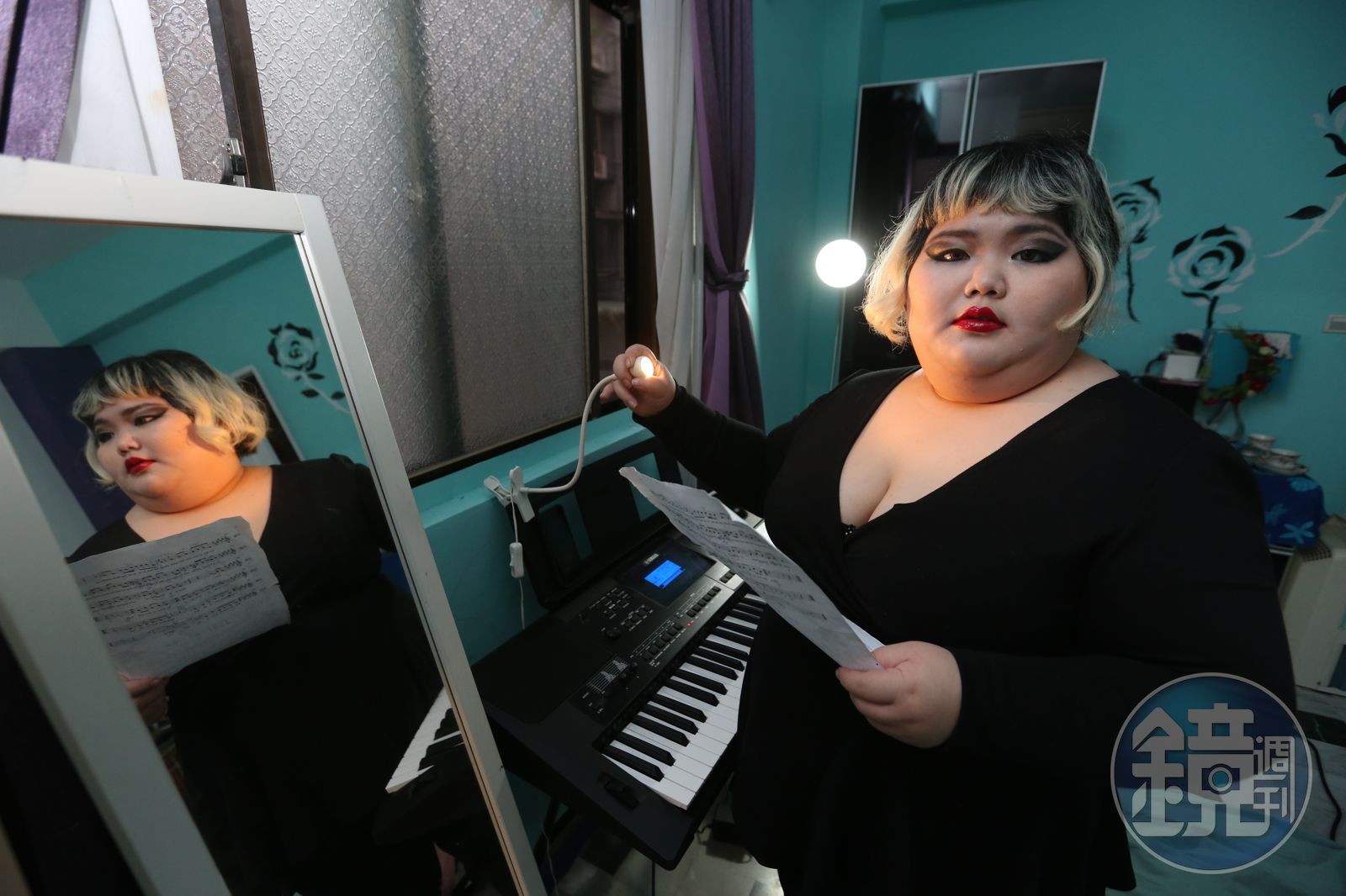 (首圖:平安夜前夕錄製影片,汪綺調整自己的音準。)