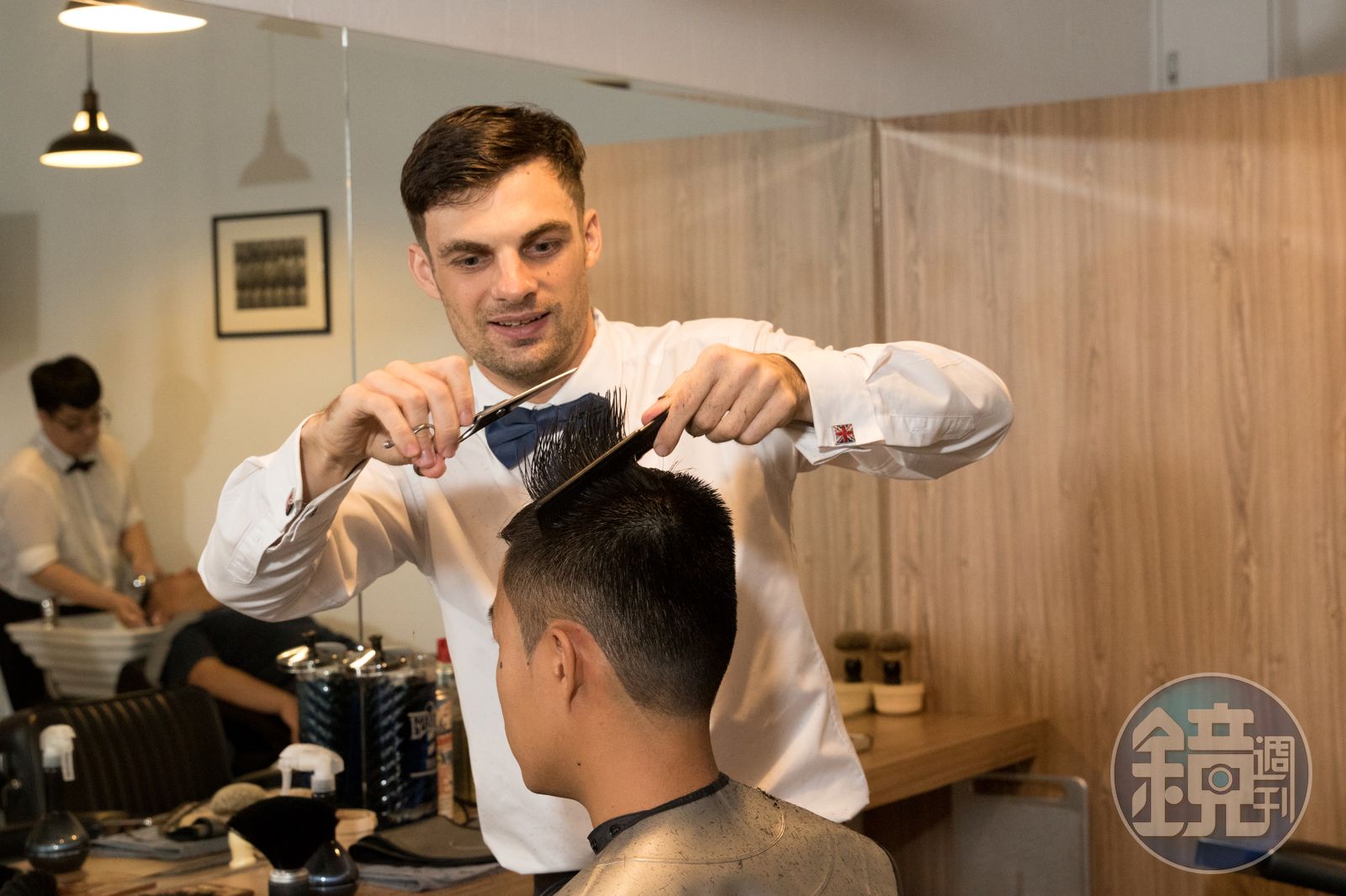 20歲那年,他帶著理髮工具,踏上環遊世界之路,一路用技藝分享英國文化,「因為Barber不只是剪髮、修容,也是一門生活藝術。」他深邃的灰藍眼珠笑瞇起來。