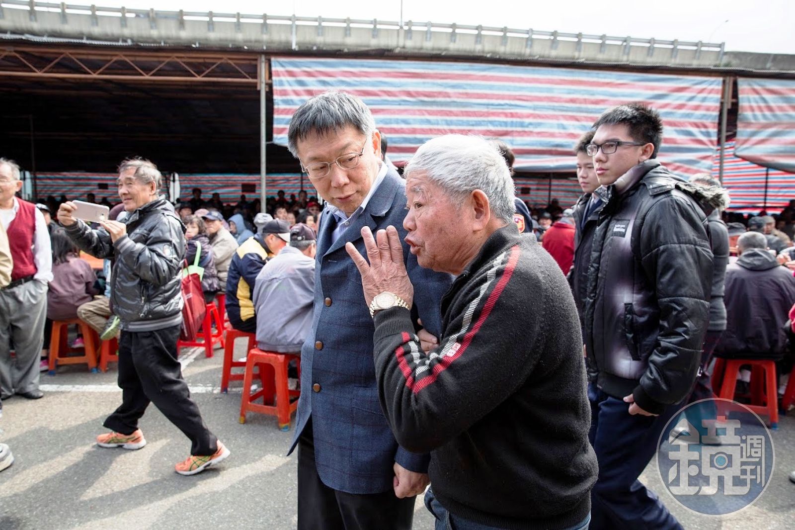 (首圖:台北市長柯文哲到場致意,刈包吉特別向他說明辦桌桌數和物資狀況。)