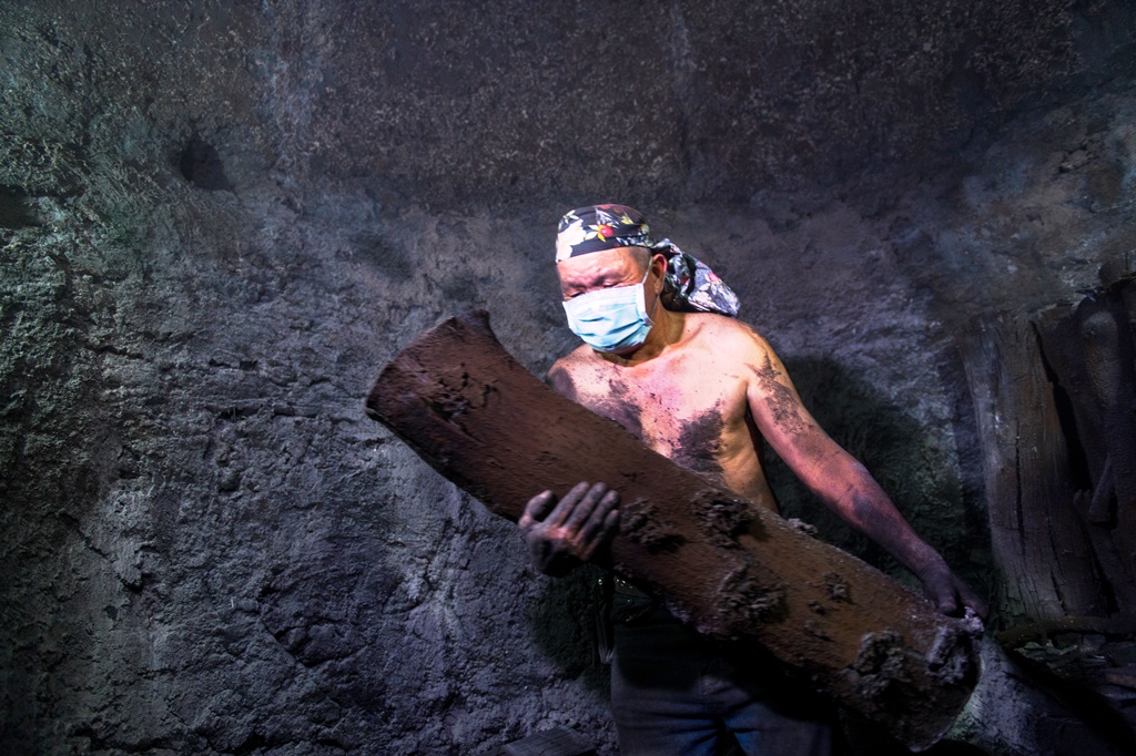 雖是冬季半夜,窯內仍保持攝氏50度以上高溫,這就是為何出窯永遠在半夜的原因。高溫粗活讓汗水直流,用手擦汗後臉上立刻一抹黑,天亮時,每個人都像個猴子臉,但充滿笑容。