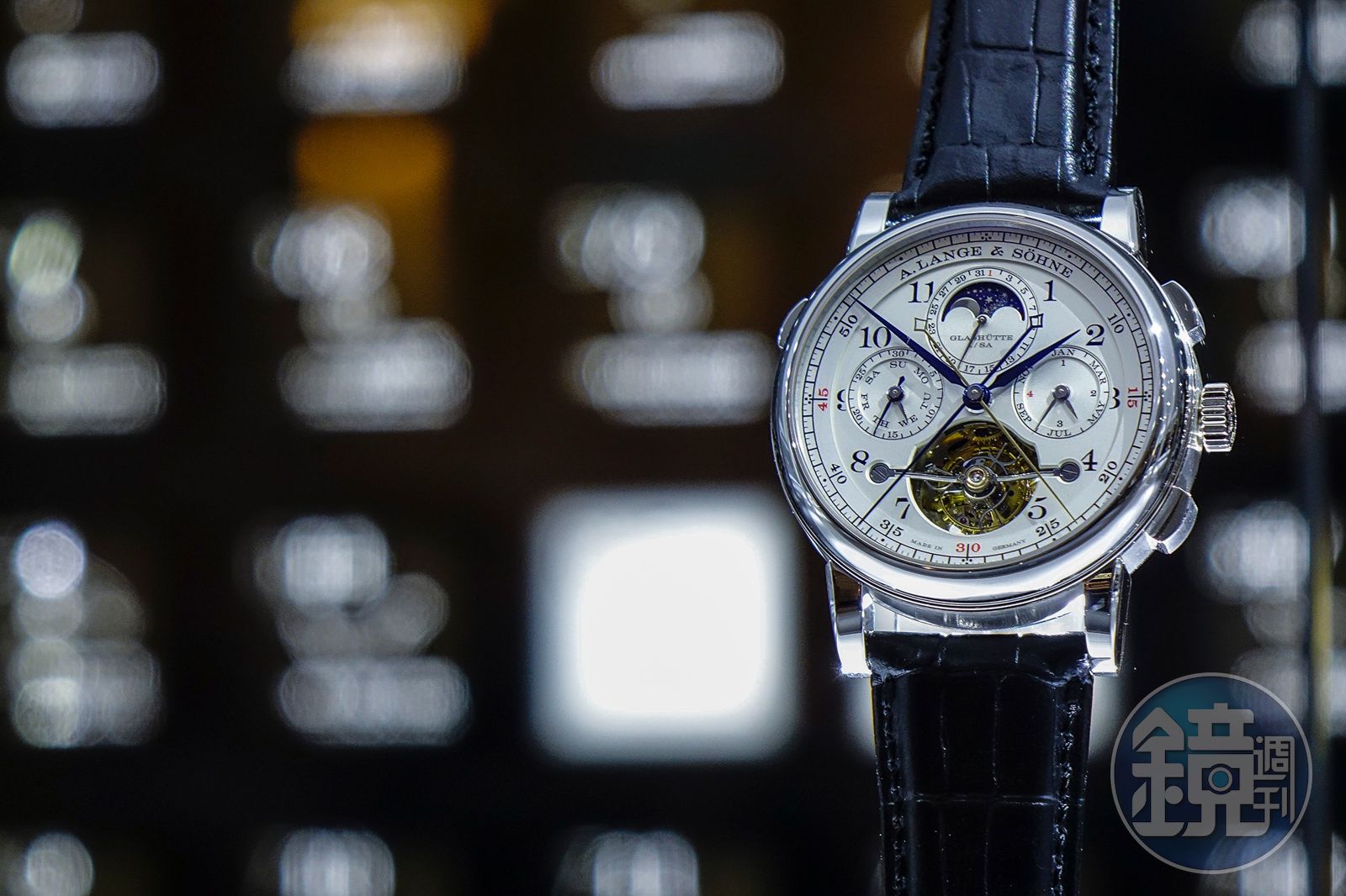 朗格是「複雜製錶」模範生,每年至少都有一支大錶問世,根據往例,朗格會將那一支最複雜的錶作成一枚超大的時鐘放在SIHH的展間內,大家都會跟它拍張照留個紀念,順便很快速地瞭解一下複雜功能有哪些。