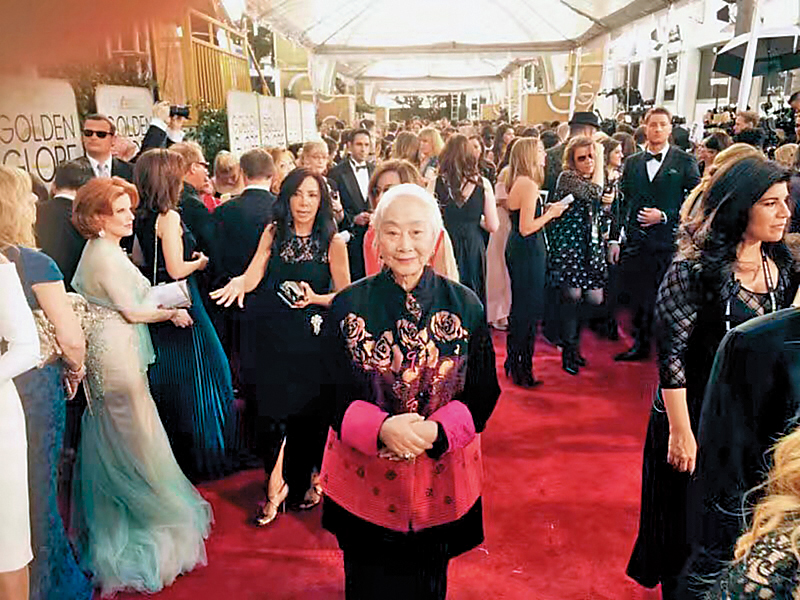 好萊塢華裔女星風雲榜首圖:氣質優雅的盧燕走上2017年金球獎星光大道。(盧燕提供)