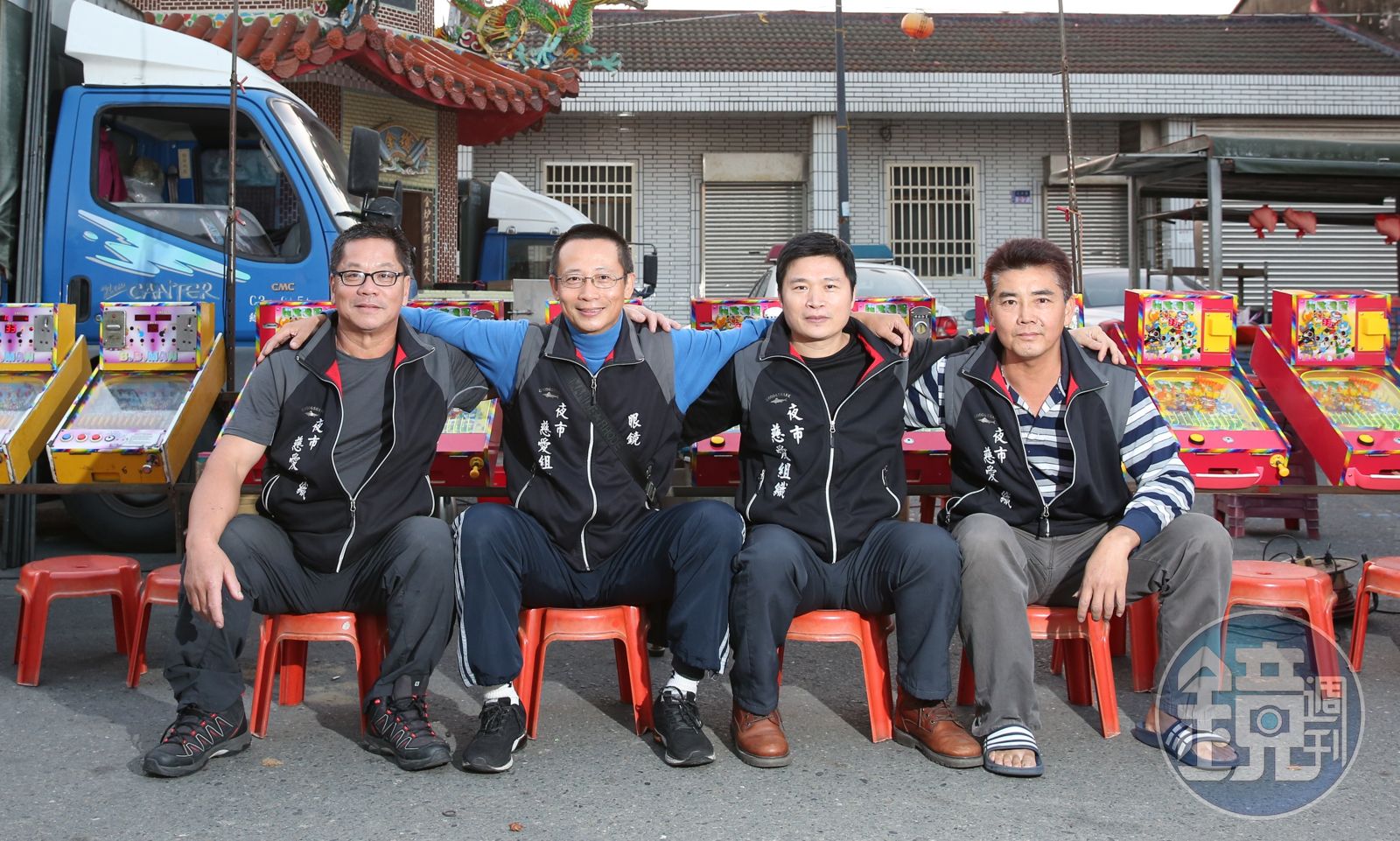 (首圖:雲林夜市慈愛會由7位攤商發起,圖為其中4人:賣霜淇淋的陳金塗(左起)、擺娃娃機的陳鴻榮、賣火鍋的潘茂榮、擺彈珠檯的葉文堂。)