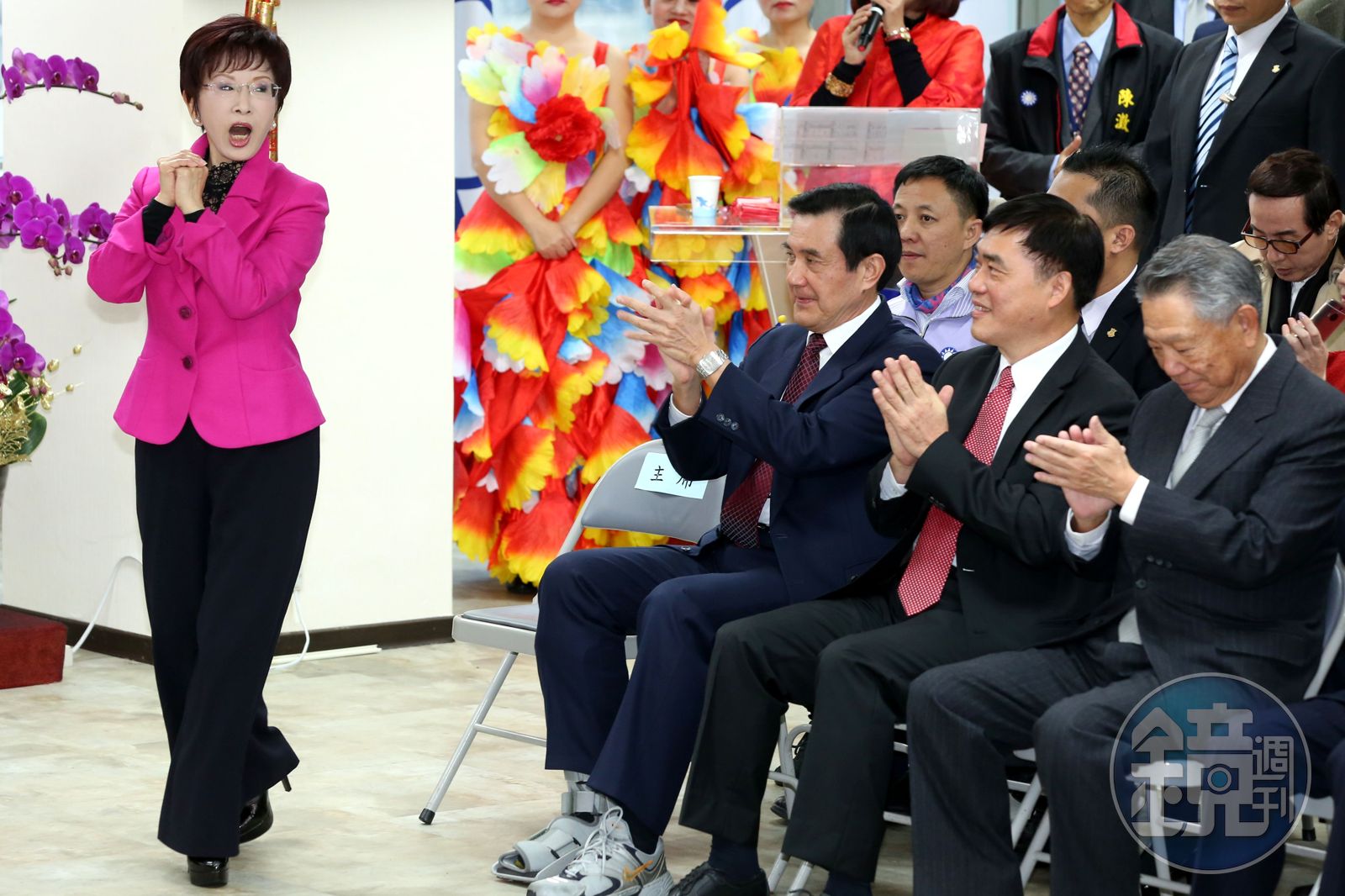 身為大當家,黨主席洪秀柱當然要把握好黨中央的新春團拜主秀;眾家資深黨員同志甚至競爭對手都已就座。