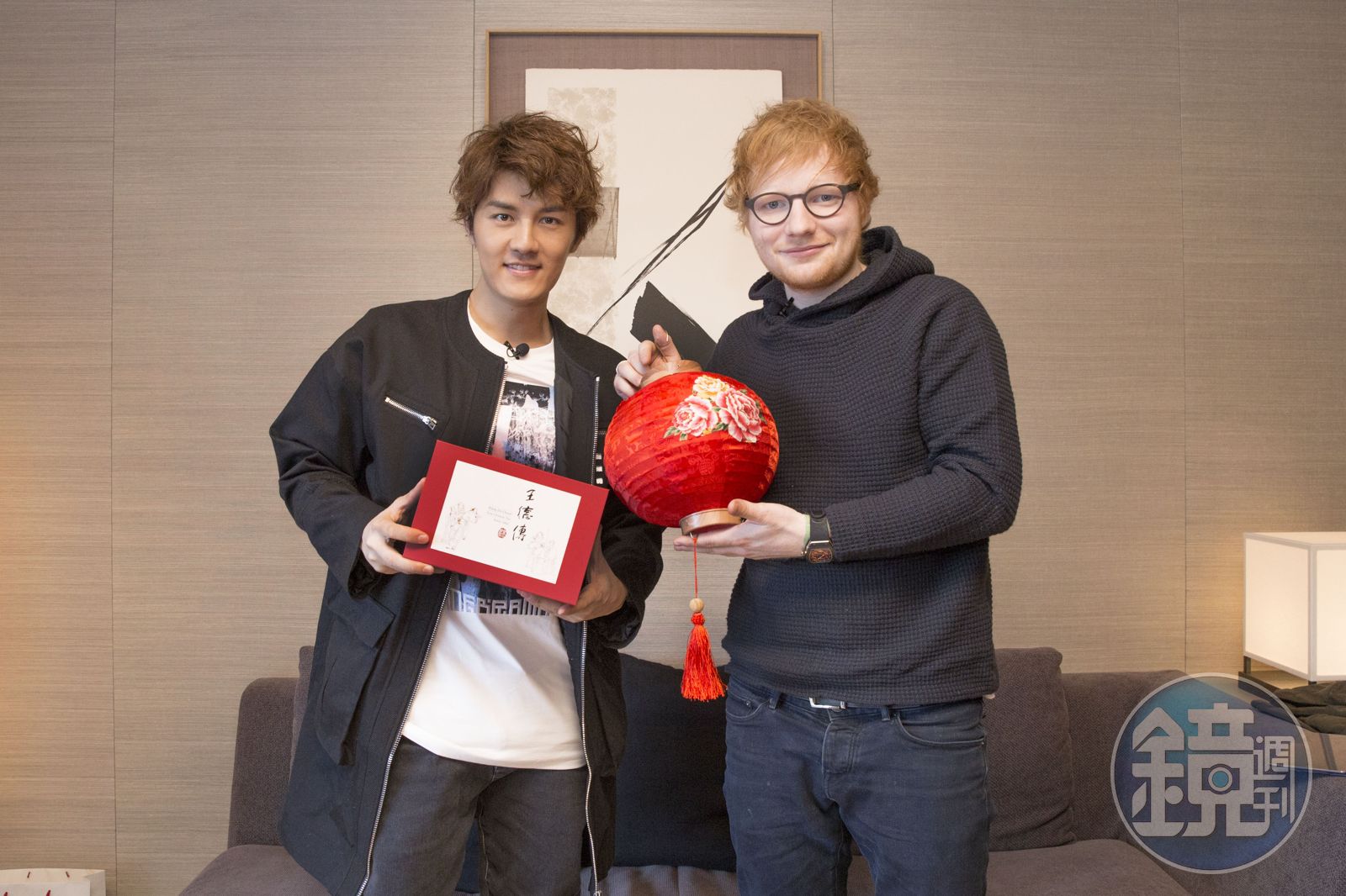 首圖:吳克群送上大紅燈籠,邀紅髮艾德一起體驗中式新年和元宵節氣氛,兩位才子也交流了許多音樂心得。(華納唱片提供)