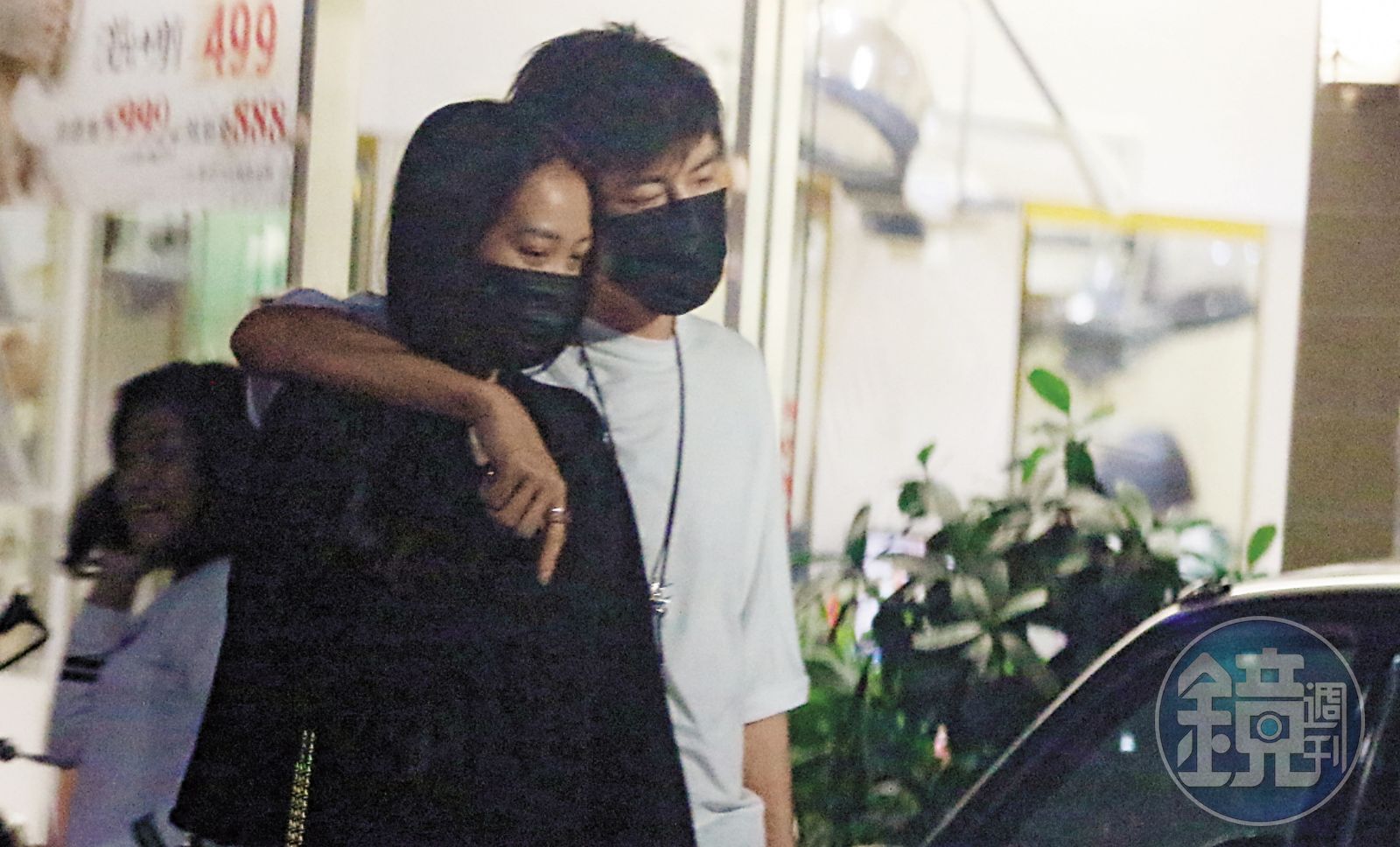 直到晚間6點左右,兩人到了一家小吃店,敖犬霸氣地勾著女生的脖子,用餐時,更是不時的打情罵俏,而女方也不是省油的燈,豪邁的將手搭在敖犬肩膀上,互動雖像哥兒們,卻也多了許多親密。晚間6點半,敖犬和女友吃完了晚餐,並在附近買了甜品,便駕車回到兩人同居的住處。