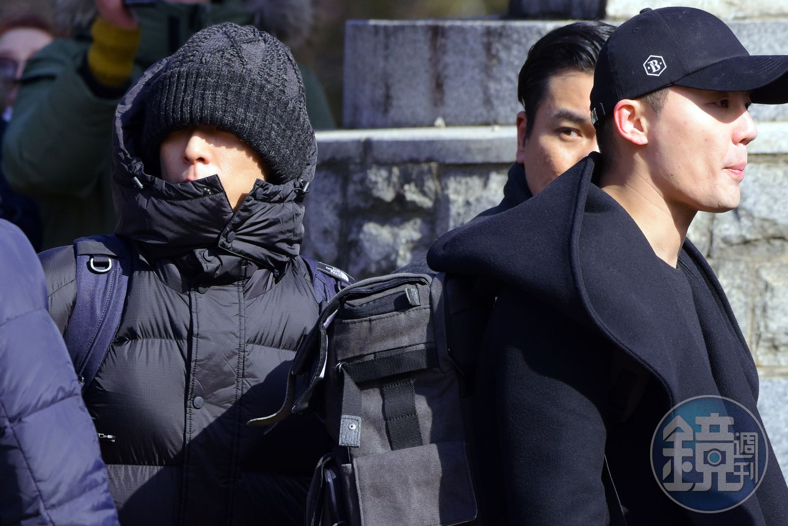 在集合場也沒把帽子脫下的T.O.P顯得醒目。(東方IC)憑藉BIGBANG與JYJ的高知名度,T.O.P與金俊秀的入伍大事,吸引許多粉絲一早便守在軍營外面,拉著應援布條為他們送行。兩人並未與粉絲寒喧,直接進入軍營,不過在前一晚,T.O.P與俊秀都在自己的ig上發表入伍感言,金俊秀上傳自己剃了短髮,用手摸頭略險害羞的照片:「謝謝大家過去13年對我的愛…沒能跟大家好好道別…希望我們會健康地再次見面。」