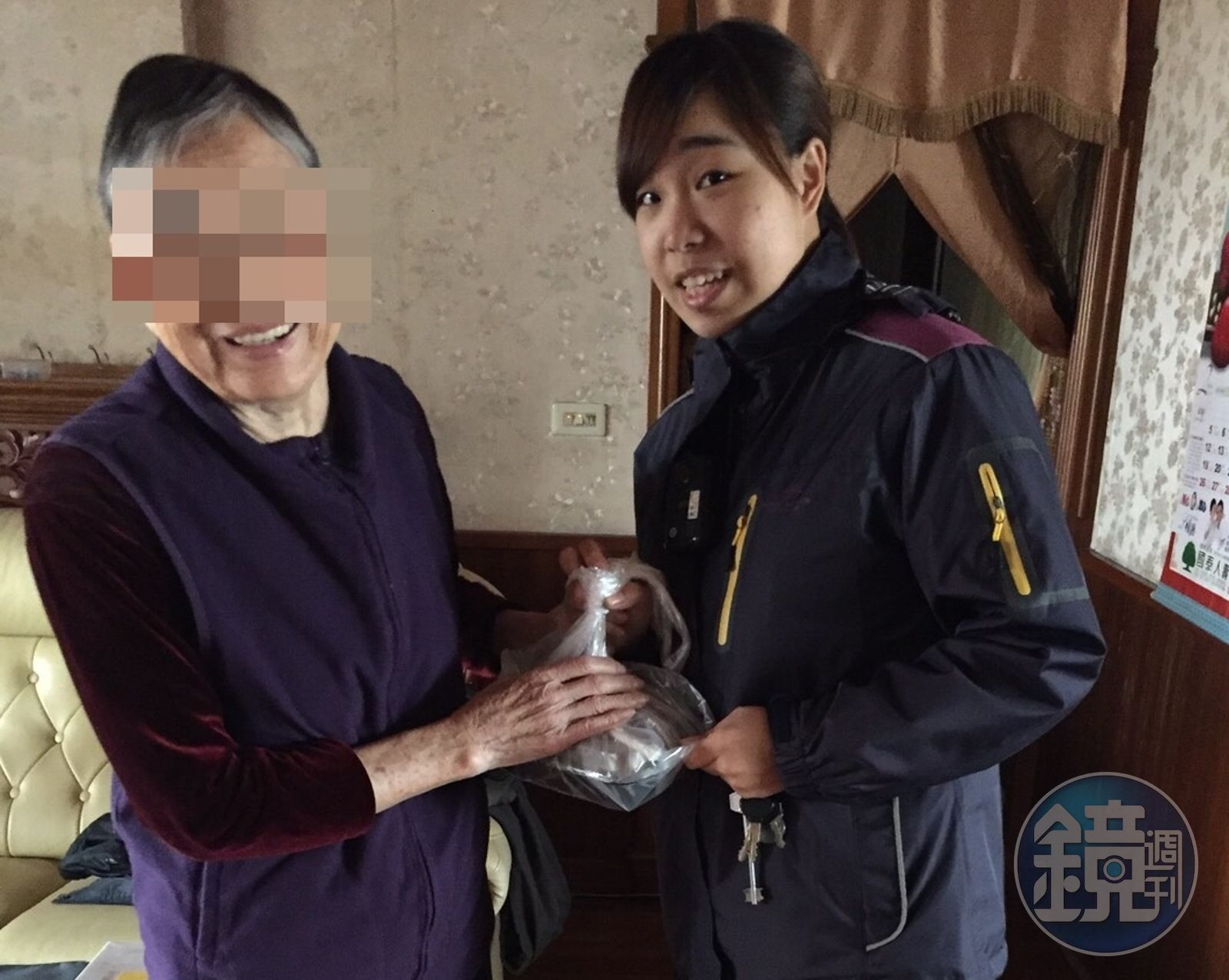 蔡儀美和王雅葵兩名女警得知後,不只自掏腰包幫莊男的母親買了排骨便當,還特地換上便服送餐,「莊媽媽,妳兒子有事,所以我們來幫妳送便當啦!」莊老婦人不知兒子因酒駕遭逮,開心收下便當還與女警微笑留影。人在派出所的莊男知道後不禁流下感謝又後悔的眼淚,向員警發誓下次絕對不會再犯。