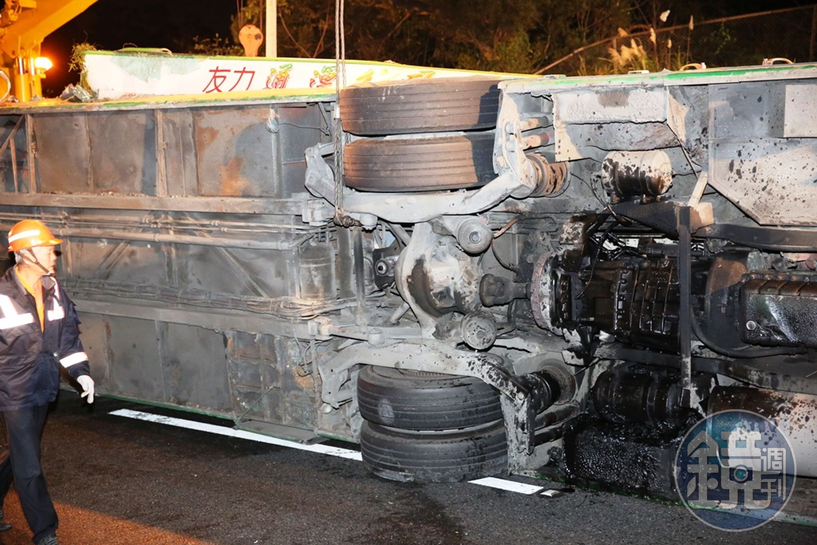 康姓駕駛的遊覽車昨晚在國道五號翻覆,胎紋淺減少抓地力,恐是事故其中一個原因。發布時間:2017.02.14 08:16 臺北時間
