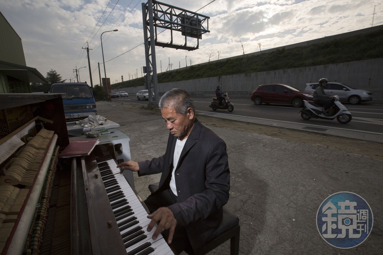 1個空地,2架舊鋼琴、廢木料、舊沙發。早上7點,車聲轟隆。這裡是台南市復興路與大灣交流道的交叉路口,混濁的音流中,忽然響起了鋼琴聲。