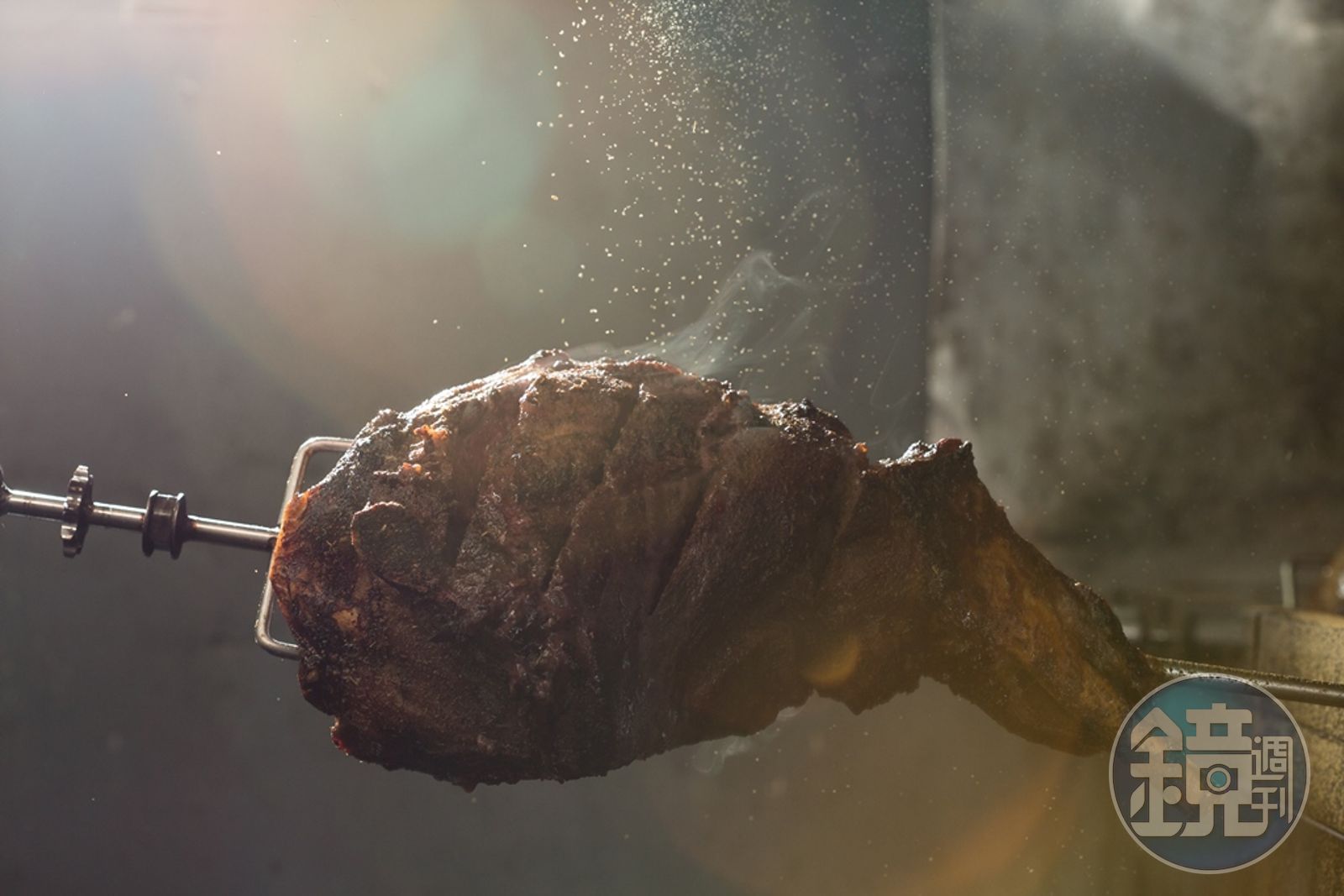 郭雨涵說,為了有穩定收入,二人決定創業開餐廳,「希望做個小生意,一家人可以在一起,後來老闆對在海南島吃過的蒙古烤羊腿,記憶很深刻,他因此飛回海南島找蒙古朋友教作法。」羊腿以蓽茇、花椒、茴香、草果等二十多種中藥香料醃漬一晚,烤至6、7分熟,上客人桌再烤,由客人自行決定熟度與入口大小。