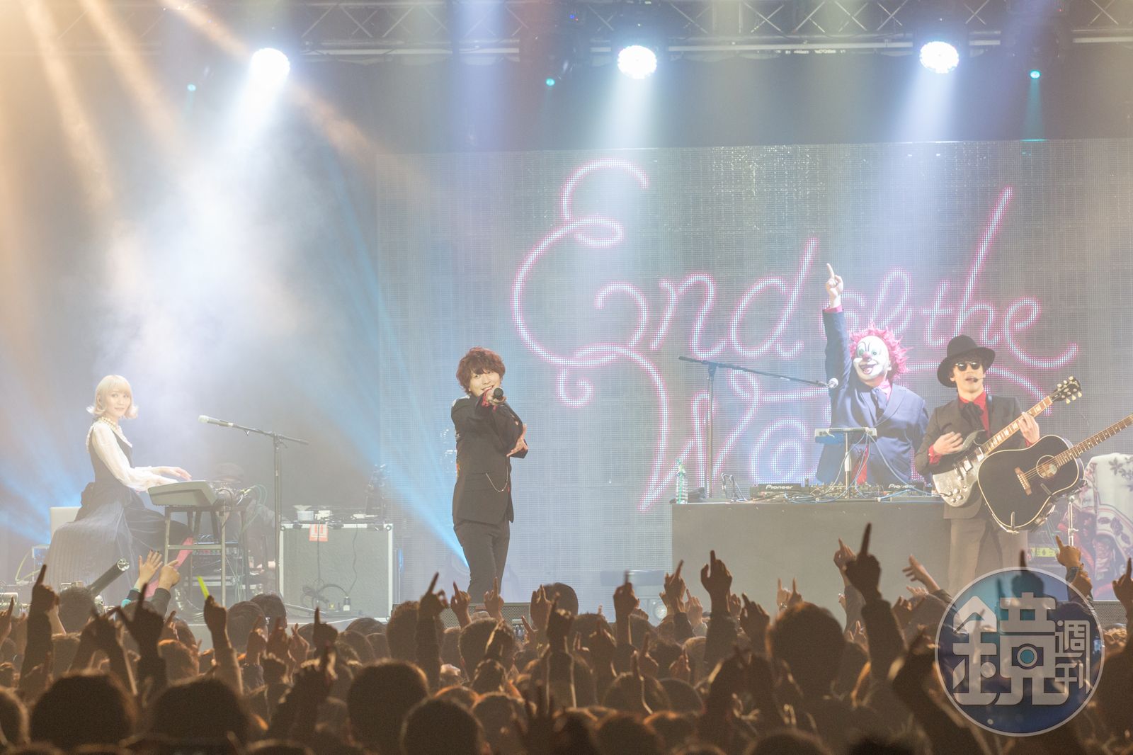 以Live Band形式,僅以LED做佈景裝飾的世界末日,除演唱多首耳熟能詳的經典歌曲,還準備了限定歌曲〈Monsoon Night〉與新單曲〈One More Night〉 ,他們還化身人偶為台灣演出特地錄製短片,內容是為來台所做的準備,為了來台灣必喝「珍珠奶茶」,團員們逗趣地以中文練習「大杯微糖去冰」,讓台粉笑得直鼓掌。中文擔當DJ LOVE則以中文:LOVE以中文:「很高興可以再來到台灣」、「台灣的大家都好到不要不要的」,再次引起全場歌迷爆裂的歡呼及掌聲。
