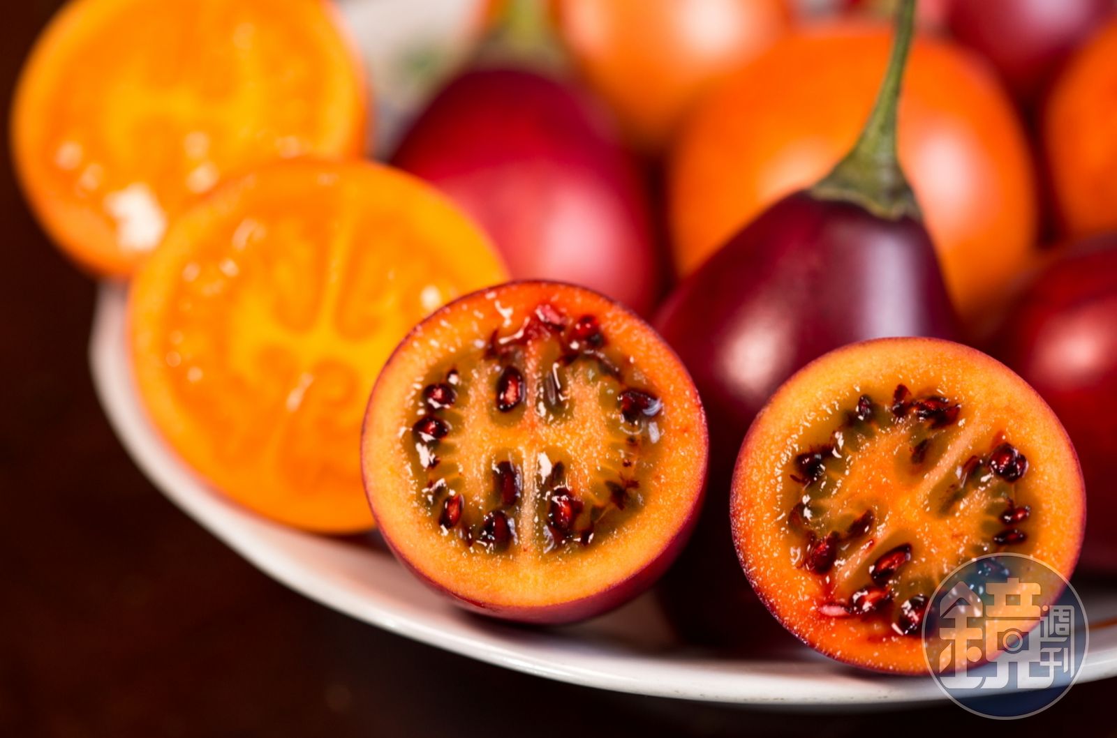 A:目前樹番茄的品種分為紅寶石與黃金兩種。紅寶石樹番茄滋味像百香果、奇異果與芭樂的綜合體,黃金樹番茄滋味則像芒果、香瓜的結合。