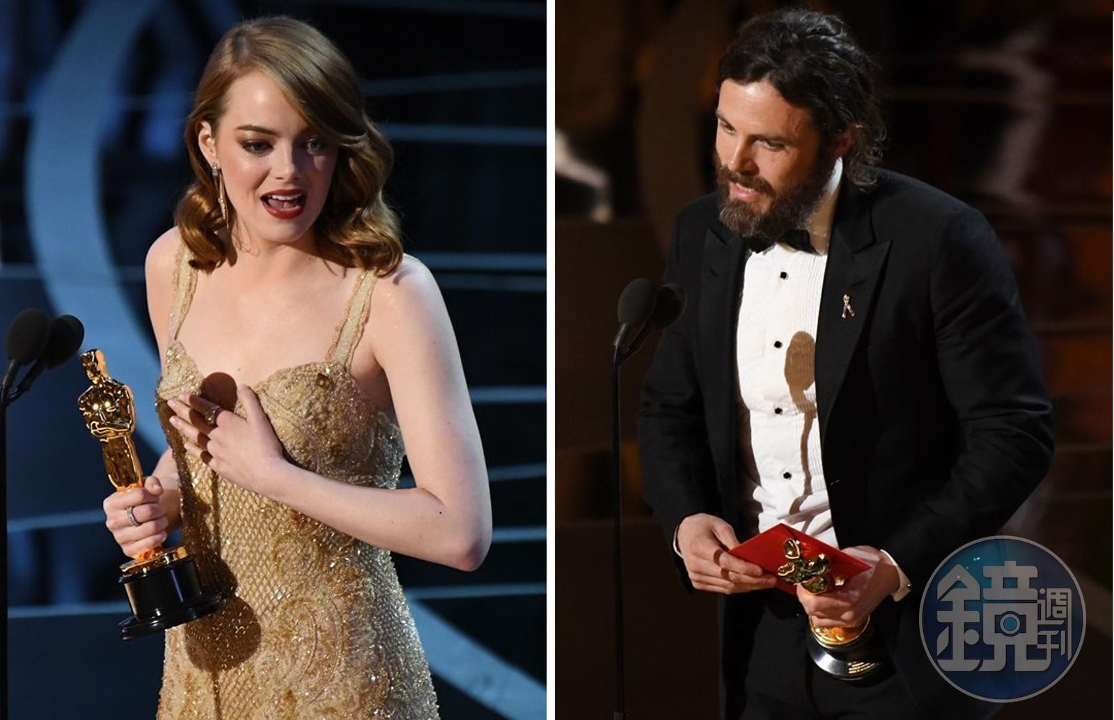 影后部分則由《樂來越愛你》艾瑪史東摘下,首度入圍便拿獎,她在台上特別感謝導演與男主角萊恩葛斯林,「我想謝謝達米恩(導演)給我這個機會,很榮幸能參演這部片,謝謝萊恩,謝謝你老是搞笑逗我開心,你是這段旅程中我最好的夥伴。」艾瑪史東在《樂》片飾演懷抱星夢卻屢受挫折的女演員,年紀輕輕卻擁有收放自如的演技,還得在片中展現舞技,獲得評審一致盛讚。
