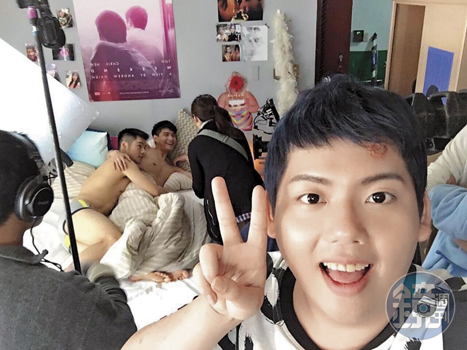 胖虎回憶起第一場戲的拍戲片段,那場戲是他勾引帥氣的「同志天菜」呂金象和他上床,劇情裡呂金象不情不願的上陣,但想不到呂金象來真的,「我以為他就是做做樣子,想不到他的手指就真的戳進我的屁屁」,在眾目睽睽之下被碰觸私密部位,讓胖虎嚇了一跳,但又怕NG要重來,忍住差點尖叫的心情,繼續演下去。