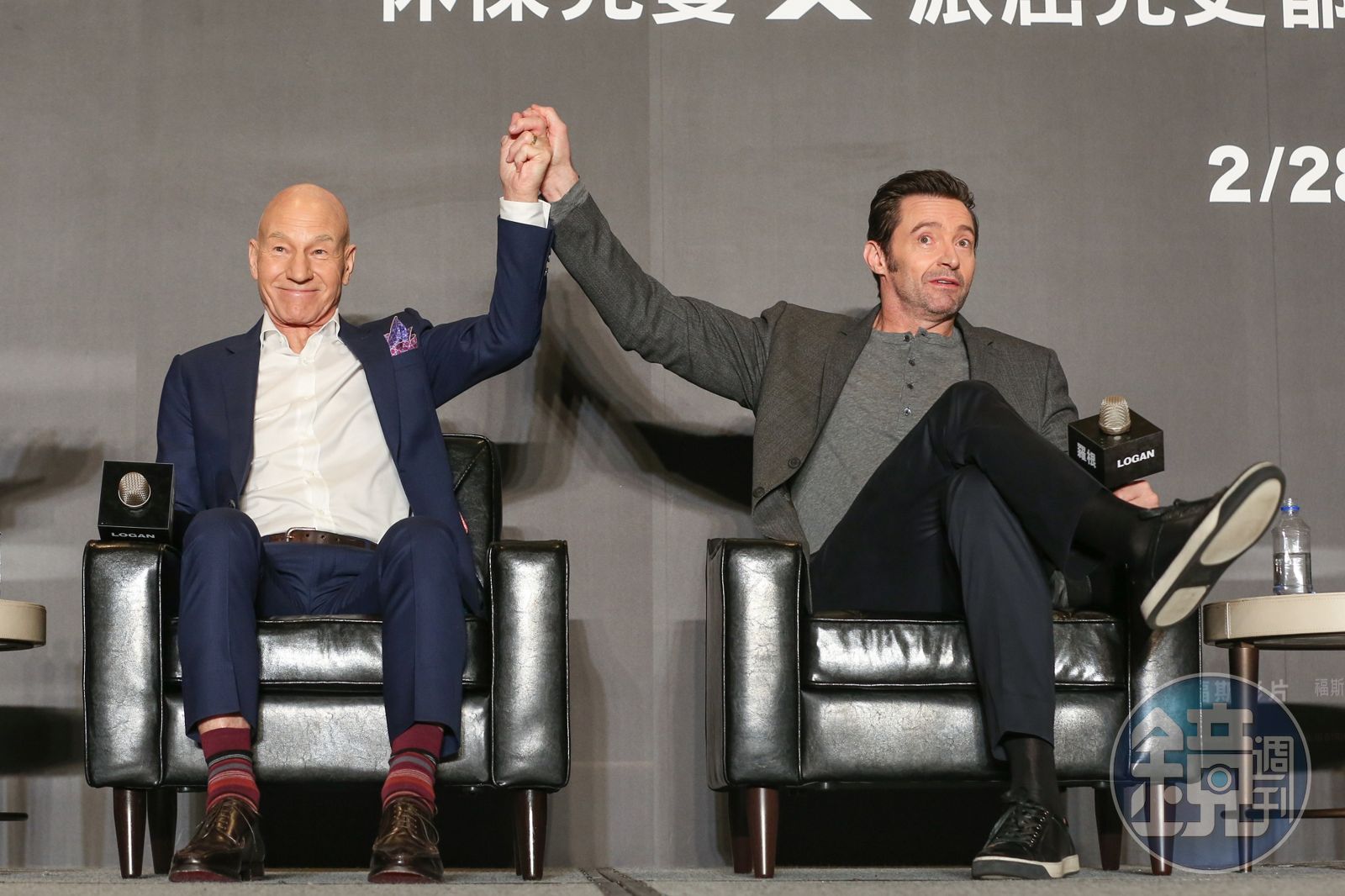 28日休傑克曼帶著「X教授」派屈克史都華一同出席電影《羅根》的訪台記者會,一開始派屈克就為前一晚缺席粉絲見面會致歉,他表示從紐約搭了19個小時的飛機前來,體力有點hold不住,小小抱恙,但他非常後悔未能親身感受到上萬粉絲的友善,不過他也強調:「我不是X教授,我沒他那麼老,而且我的身體比他好很多!」