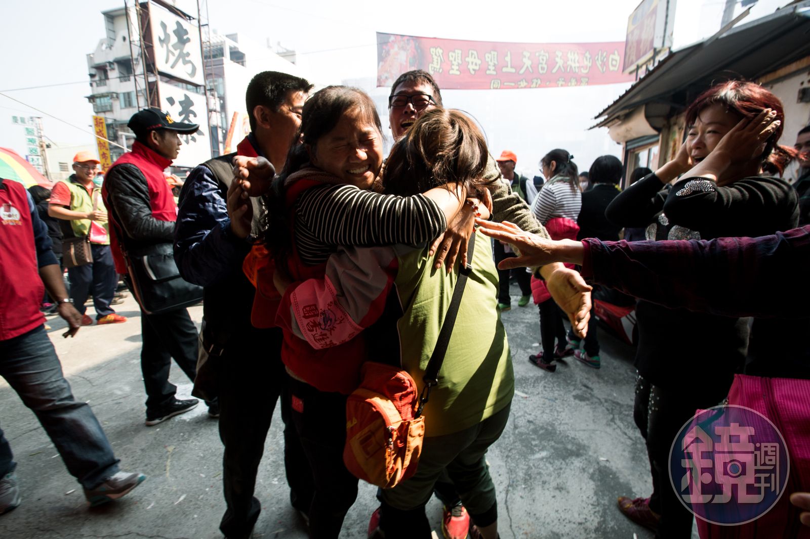 北港小鎮頓時人山人海,手抱嬰兒的信眾也一同見證媽祖的風采。
