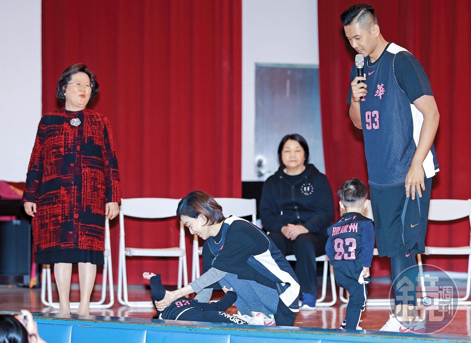 日前陳建州帶著一家人出席金華國中80周年校慶,身為傑出校友的他,在籃球場掛上自己球衣,但差點掉下來,兩個寶貝兒子飛飛翔翔全程也很不給老爸面子,一下放聲大哭,一下躺在地上賴著不起來,模樣又萌又失控,簡直可以去演《爸爸去哪兒》了。