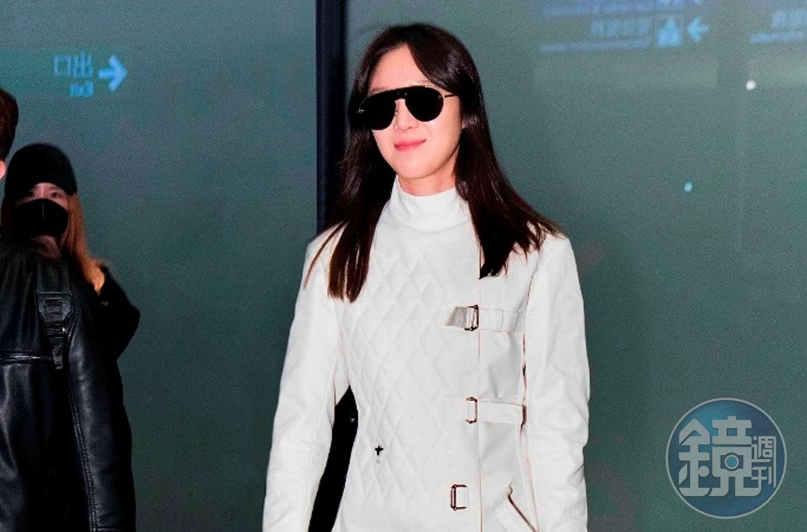 出現在機場的她,穿著10萬5000元的白色小蜜蜂圖騰絎縫棉質外套、3萬4000元太空銀色小牛皮透氣孔洞與小蜜蜂圖騰球鞋、手拎16萬5000元的Lady Dior 拿鐵白色小羊皮鉚釘綴飾籐格紋大型款提包,臉上掛著1萬9800元的黑色與金色飛行員造型太陽眼鏡。