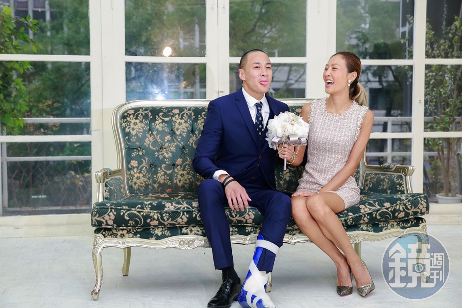 何潤東和愛妻Peggy結婚滿一年, 10日兩夫妻和何潤東父母一起在Julia婚紗拍結婚紀念照,在中國趕拍戲的他, 24小時旋風回台,不過他左腳受傷,吃力的拿著拐杖,一跛一跛的爬上樓拍照, Peggy貼心幫他擦汗,不失甜蜜氛圍。但Peggy知道何潤東受傷不心疼,反而罵他活該,因為何潤東不是因為拍戲受傷,是和吳克群打球時,不小心扭到,讓何潤東說自己今年犯太歲。