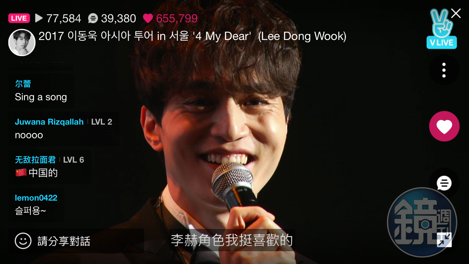 在「V LIVE」直播的前一小時中,李棟旭特別回答了網友的問題,表示理想型的女性為「愛吃又吃很多」、「有智慧」、「談得來」,還補充:「如果長得很漂亮就更好了!」直播中還分享了許多拍攝《鬼怪》及綜藝節目《Roommate》的私房照,他感激地表示:「過去拍完一部戲,通常會開始休息,但拍完《鬼怪》後就拍雜誌、拍廣告,一天都沒辦法休息啊!」還開心表示,這場活動門票在開賣1分鐘就賣光,「真實接收到很多粉絲給予的關愛,感謝大家!」