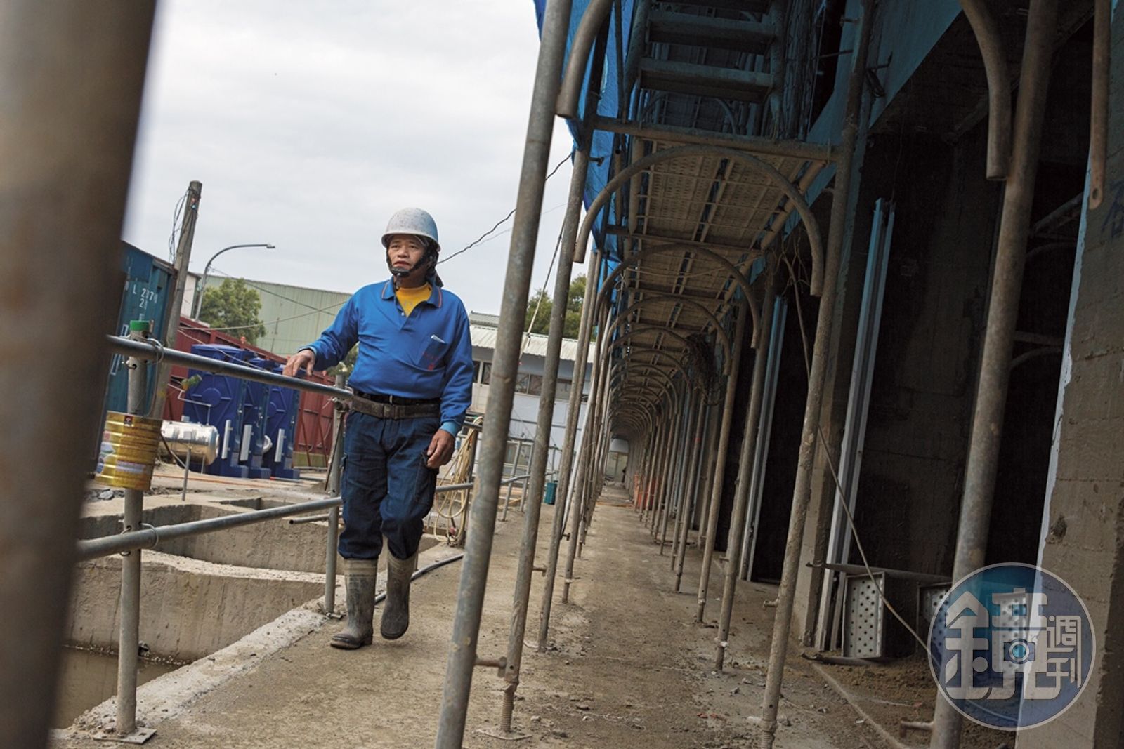 但工地是份苦差事,例如某天我們想與廖忠義約拍照,他卻說一早7點要到基隆報到,5點半就得從龜山出門。傍晚5點半才收工,他還得趕緊清洗輸送水泥的壓送車,當時天雨,手機顯示攝氏14度。忙完到家已近晚上8點。