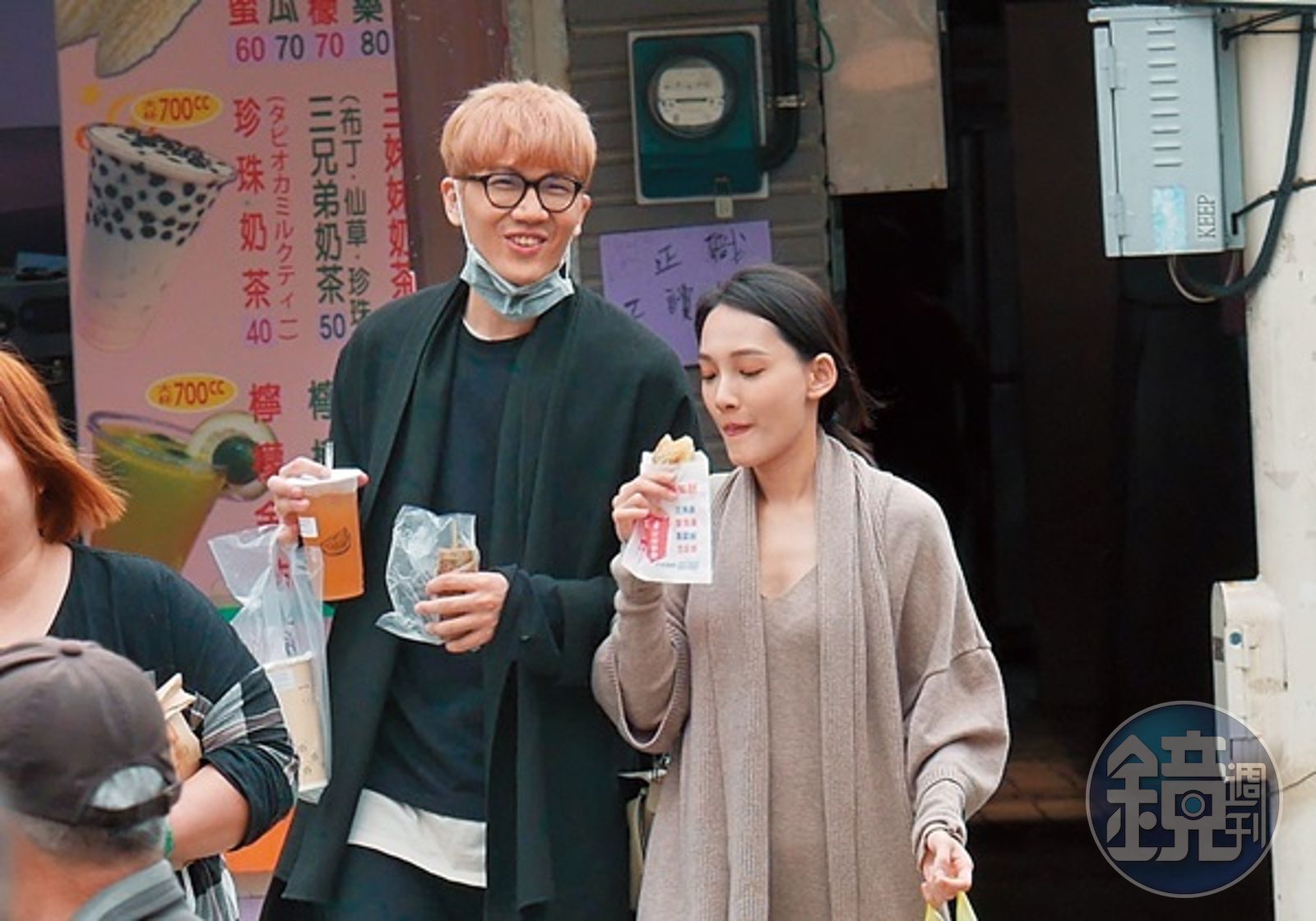 結束參拜行程,兩人手牽手開始逛起下午的饒河夜市商圈,互動與一般情侶無異,邊逛邊買雞排、飲料等美食,小玉這時拉下口罩大快朵頤,終於露出全臉結案,絲毫沒有偶像包袱,小倆口有說有笑。逛完夜市後提著兩袋食物及飲品、搭乘捷運再步行回家,一路上女生更是不停主動去勾男生的手,直至一起返回民生社區附近的家。