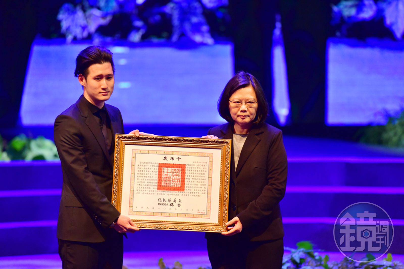 蔡英文頒發褒揚令之後,與辜成允的母親辜嚴倬雲致意,只見蔡英文蹲下來,輕拍辜老太太的背,並坐在她旁邊聊了幾句,接著向家屬鞠躬,隨後離去。