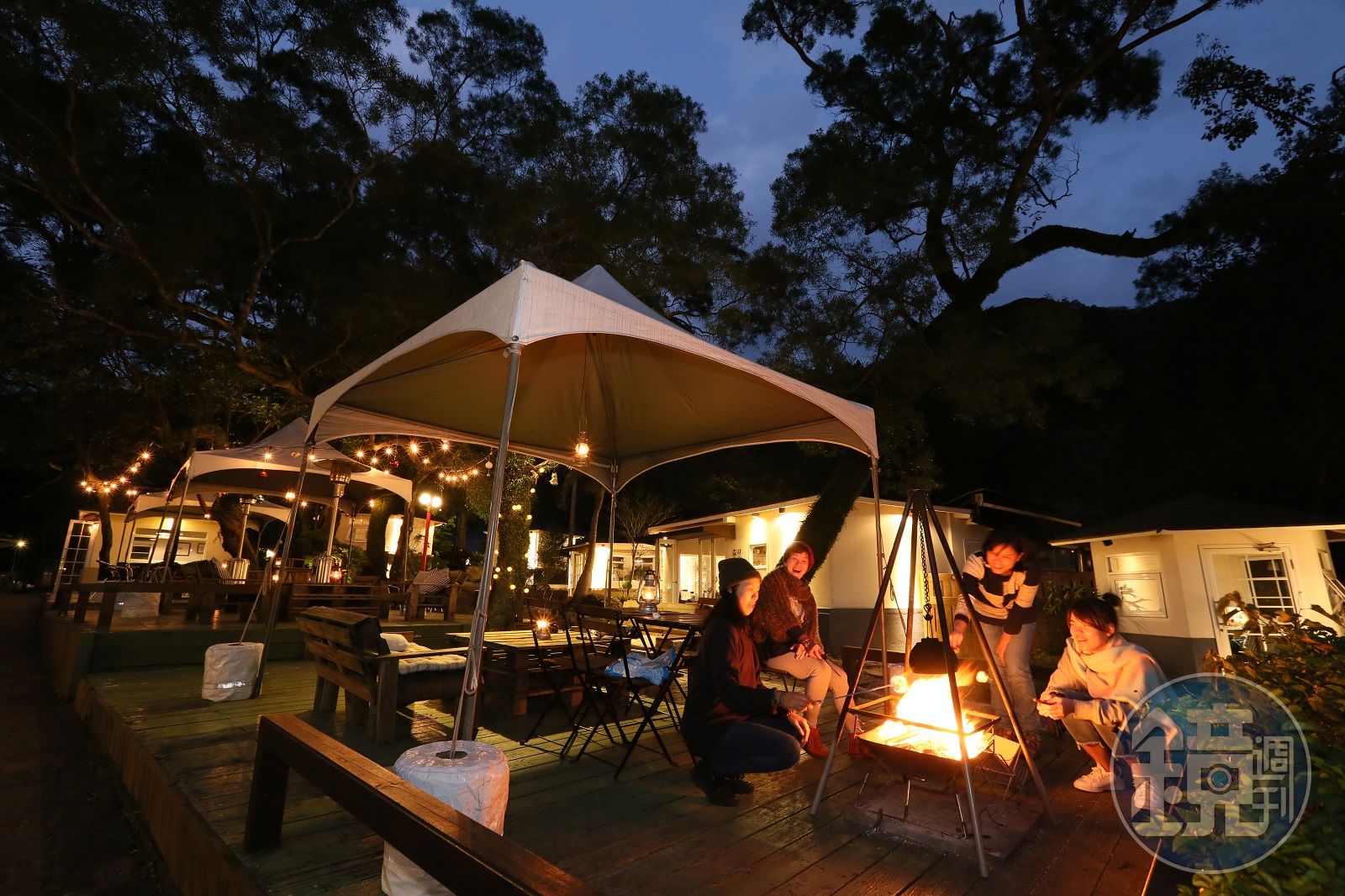 白天的「聽雨軒」自然清幽,到了晚上又是完全不同的氛圍,當戶外焚火台上燃起柴火,店家有空時還會送上棉花糖,讓客人圍著爐火、烤棉花糖取樂,瞬間有種回到學生時代,感受另種森林裡戶外野營的歡樂氣氛。