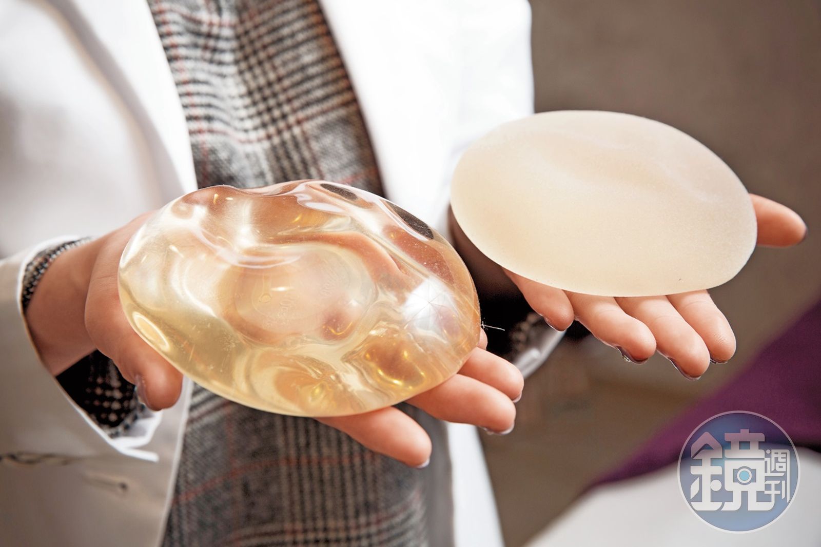 此外,填充物材質也有差異。林孟羲表示,過去填充物材質多採平滑面,因容易滑動,若產生莢膜,就可能變形、變小,還會造成兩邊乳房高低不一、疼痛,有按摩必要。現有絨毛面填充物,學界有一派認為可減緩莢膜滋生,不用按摩;但也有另一派認為,還是需要持續按摩。