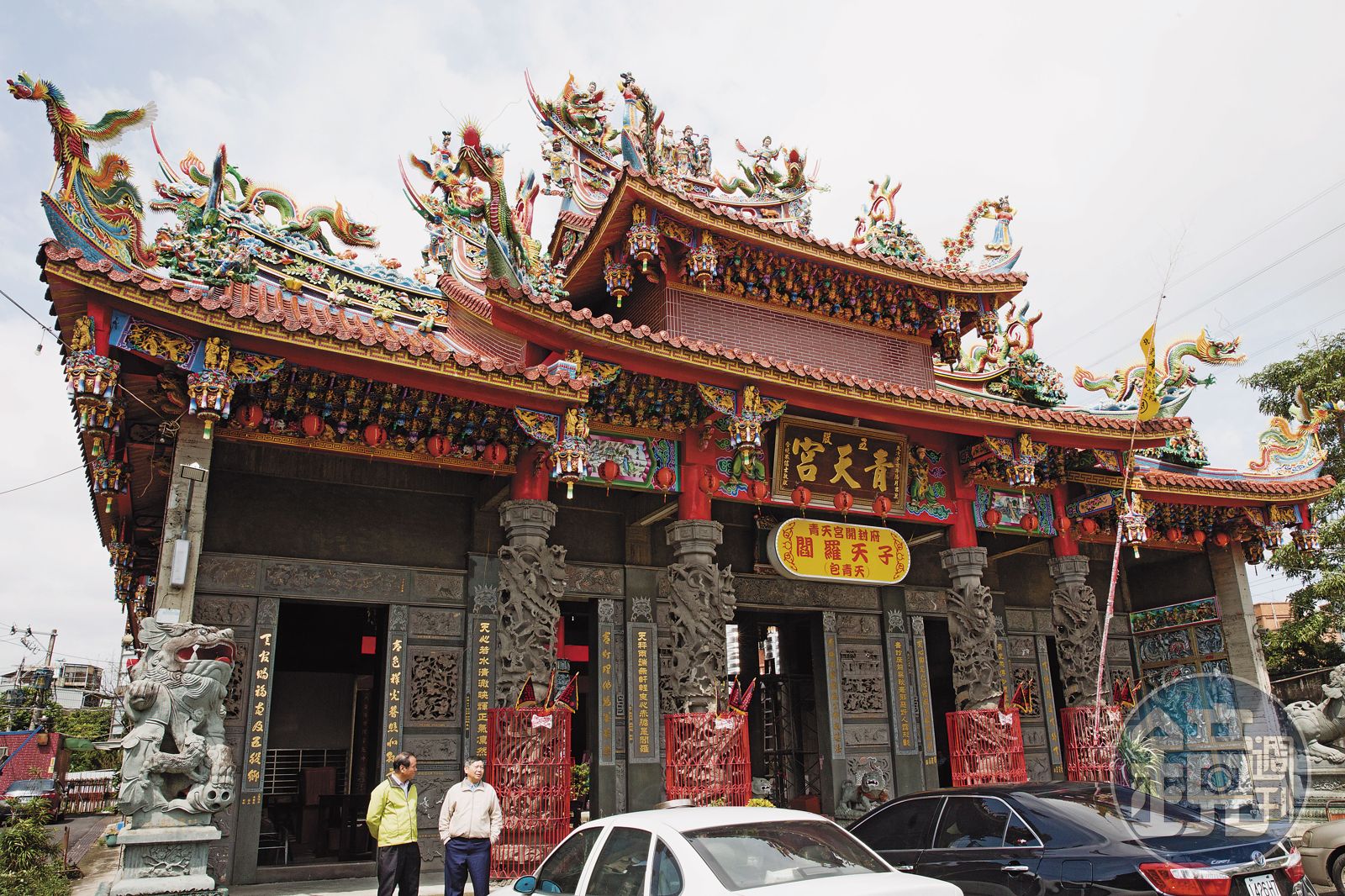 新莊和平里里長蔡河彬在青天宮附近居住近40年,他帶著本刊記者進到廟裡,一點一滴地介紹此廟從無到有的過程,近年才剛翻新的雕龍畫棟可看出信徒的虔誠,然而,原該莊嚴肅穆的廟宇卻被掛上寫的「抗議」、「還我家園」的重重白布,也反映當地居民將流離失所的無奈和悲憤。