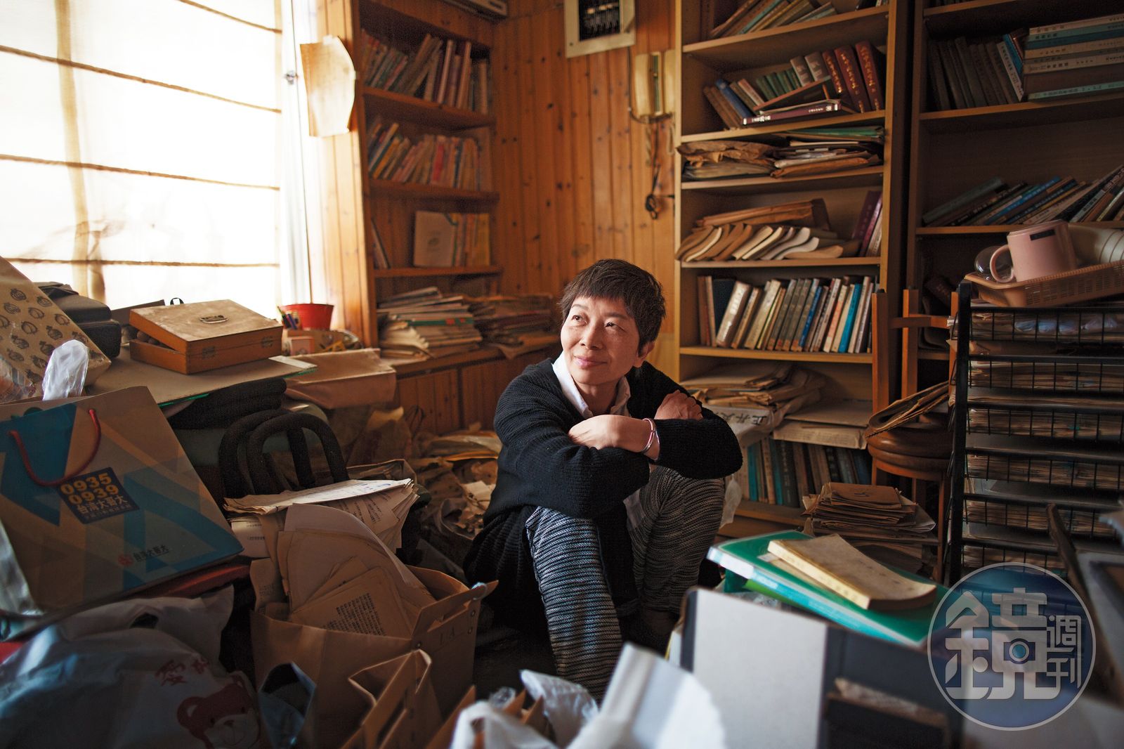 「這裡已經是廢墟了,而且我好像有囤積癖。」陳文慧說得灑脫,毫不介意讓人看見雜亂。入內開燈,是一櫃櫃書籍,一袋袋寫滿的作文稿紙,一落落報章雜誌,堆滿了整棟樓房。「這些學生的作文,我還來不及整理。他們都長大了,等他們結婚時,我想送給他們。」陳文慧拍落紙上的塵埃,重視情感,讓她一張紙都捨不得丟。